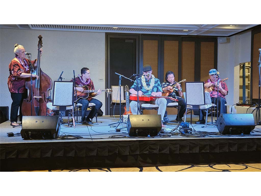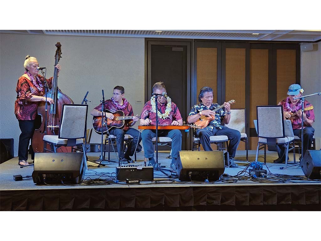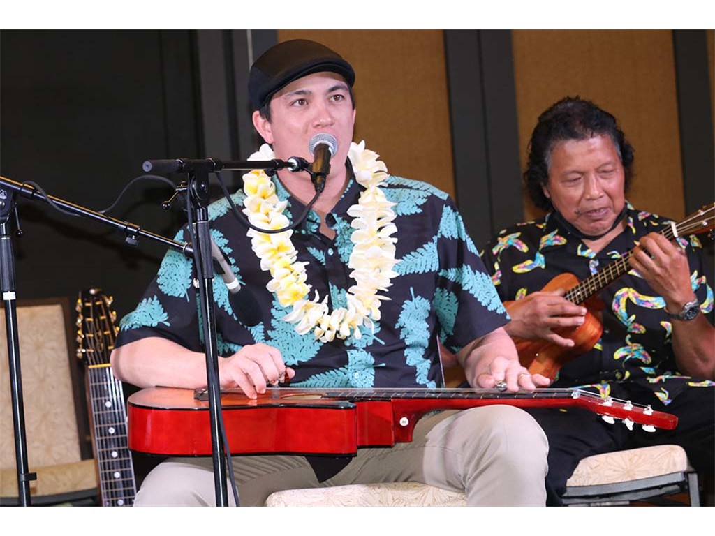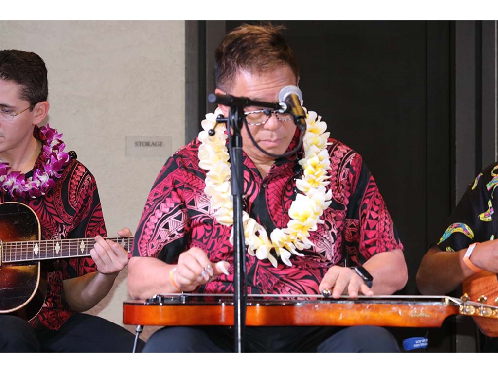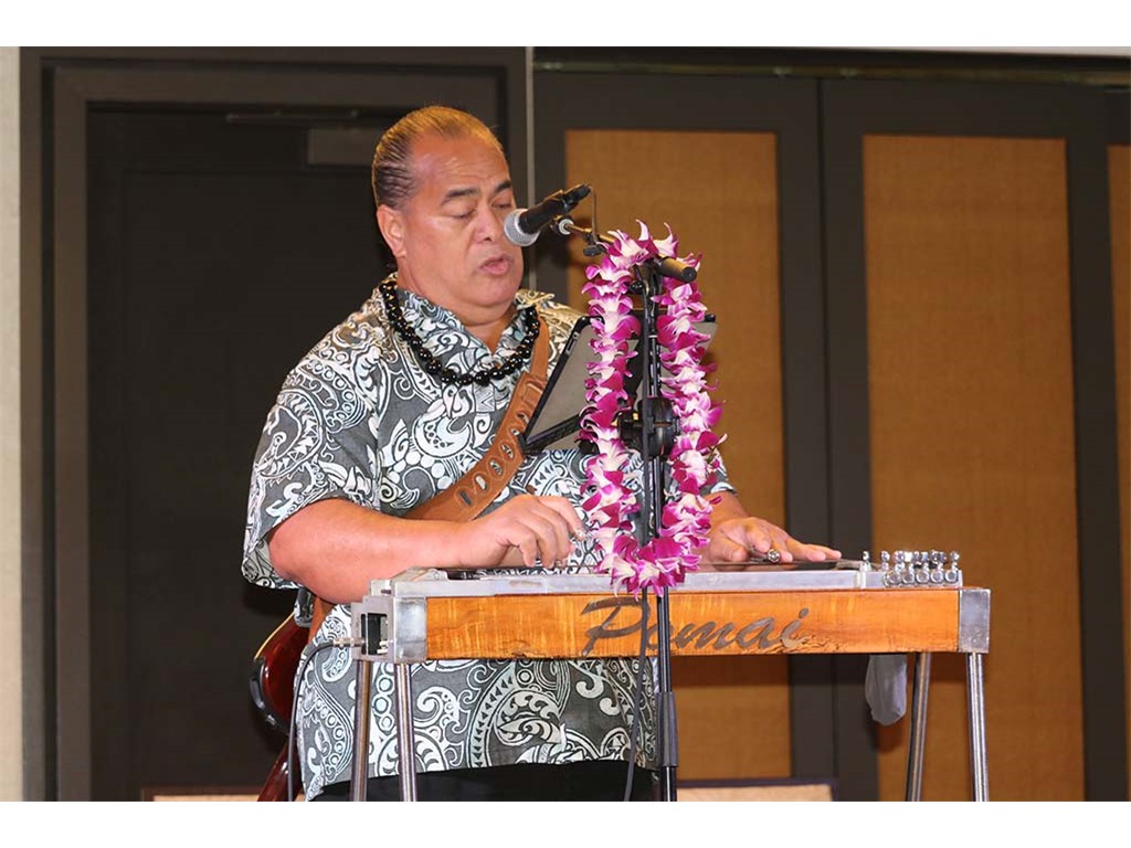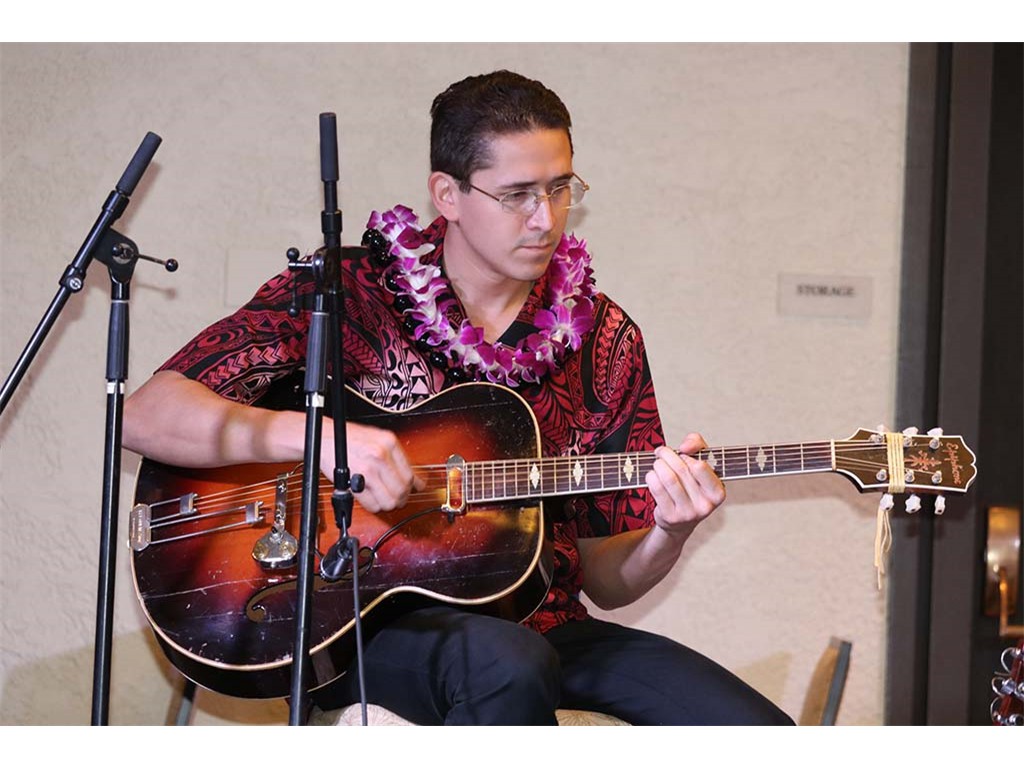 Featured steel guitarist Kapono Lopes. He was so impressed with a project guitar converted by Daniel Tremblay to become a steel guitar that he asked to use it for his performance. Kapono was assisted by Bobby Ingano.