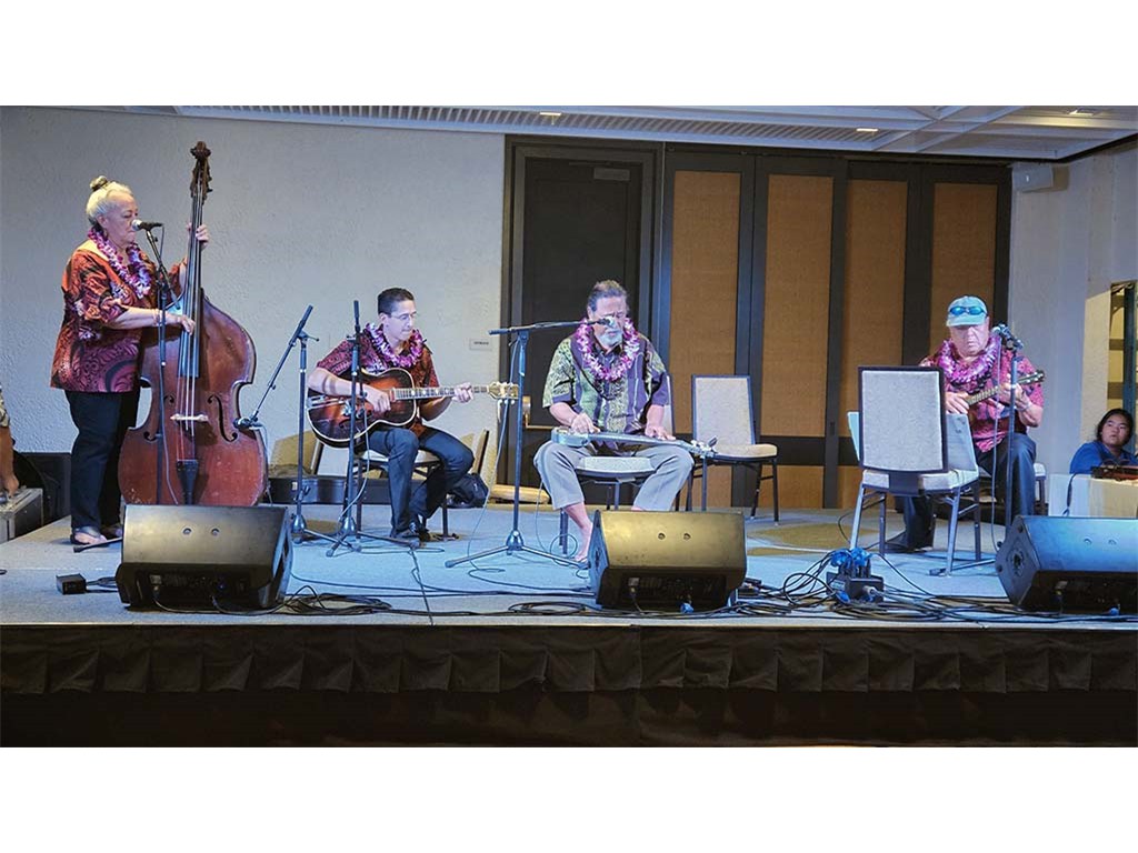Geri with backup musicians Helene, Joseph, and Kaipo.