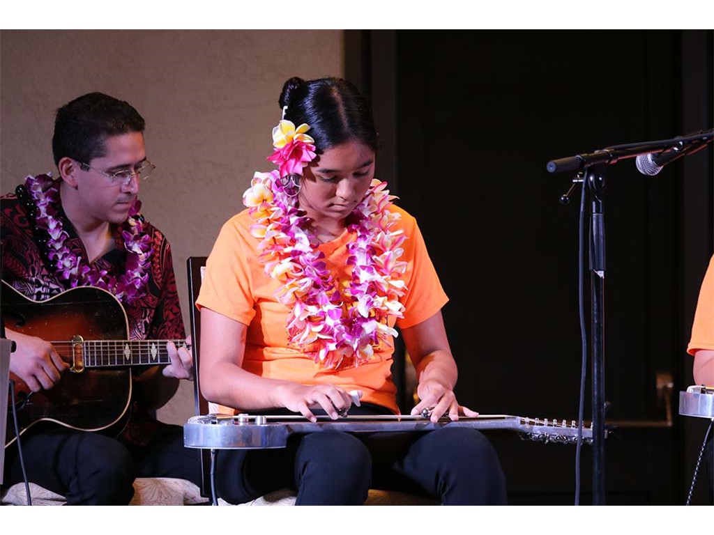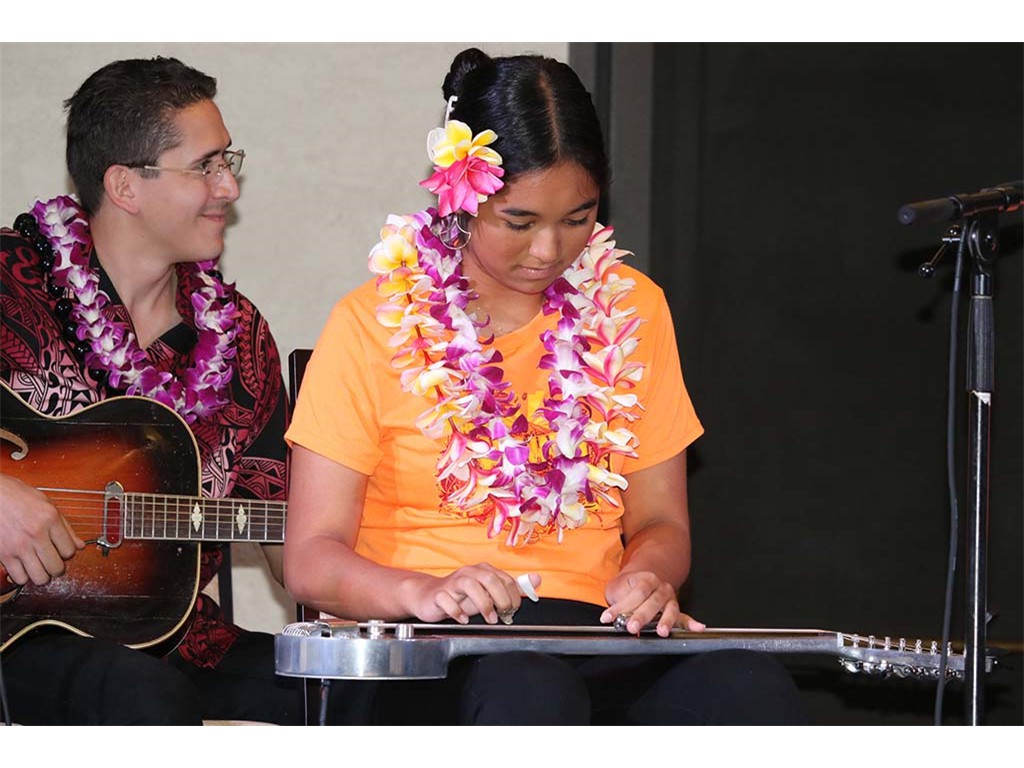 NextGen steel guitarist Makamae Lyu-Napoleon with Alan Akaka.