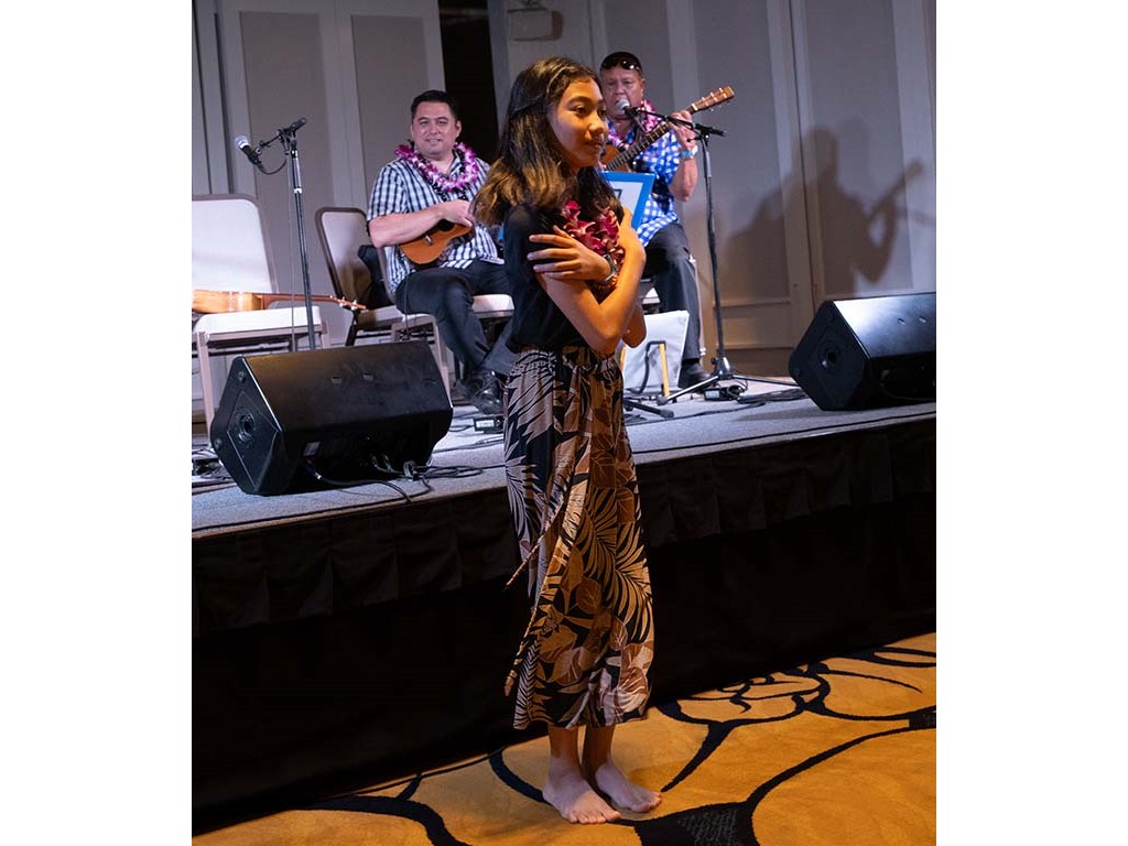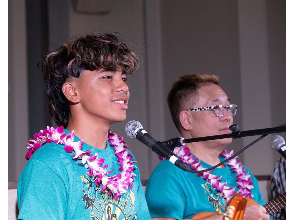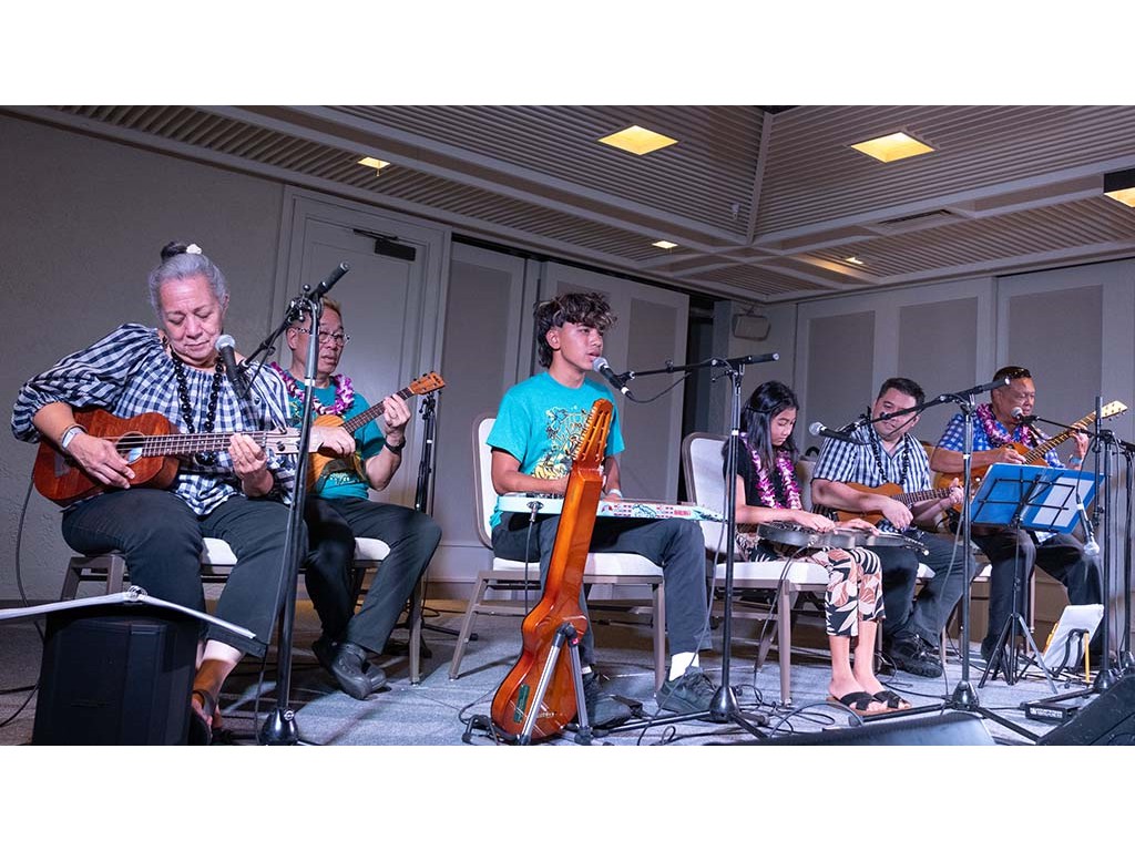 NextGen steel guitarist Enosa Lyman sings Blue Hawaiian Moonlight, accompanied by NextGen Hiʻipoi Lindsey and Helene Woodward, Alan Akaka, Kaipo Lindsey, and Kaipo Asing.