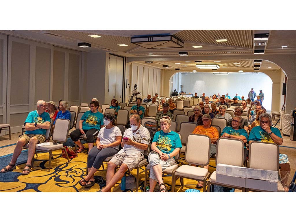 An audience sea of green reflects the 2024 Kona Steel Guitar Festival t-shirt.Back to Gallery: 2024 Festival