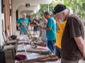 Geri Valdriz and Chris Stewart setting up the steel guitar exhibit table. Photo by Addison Ching.