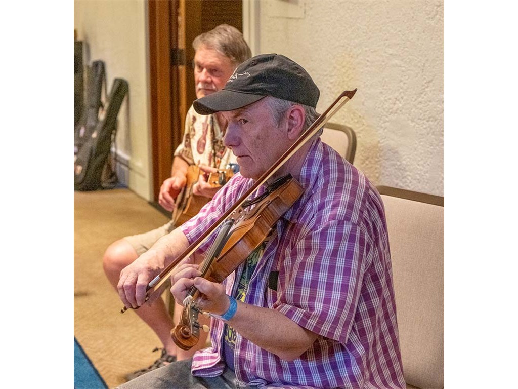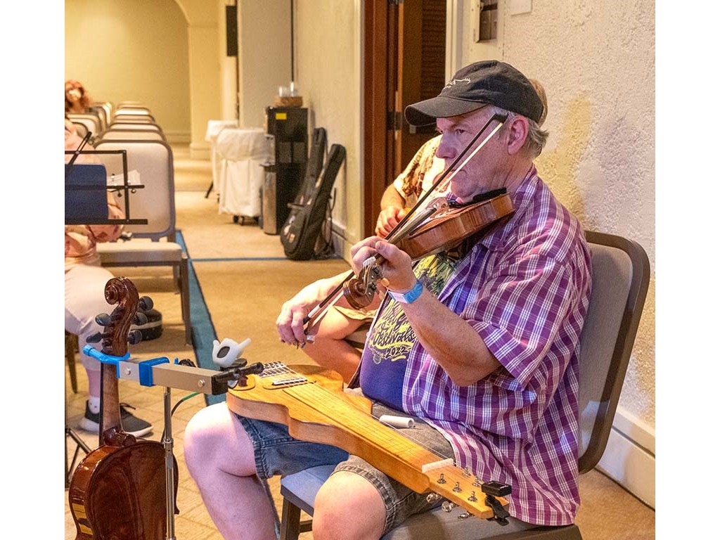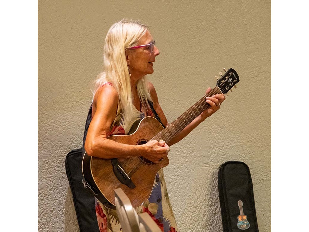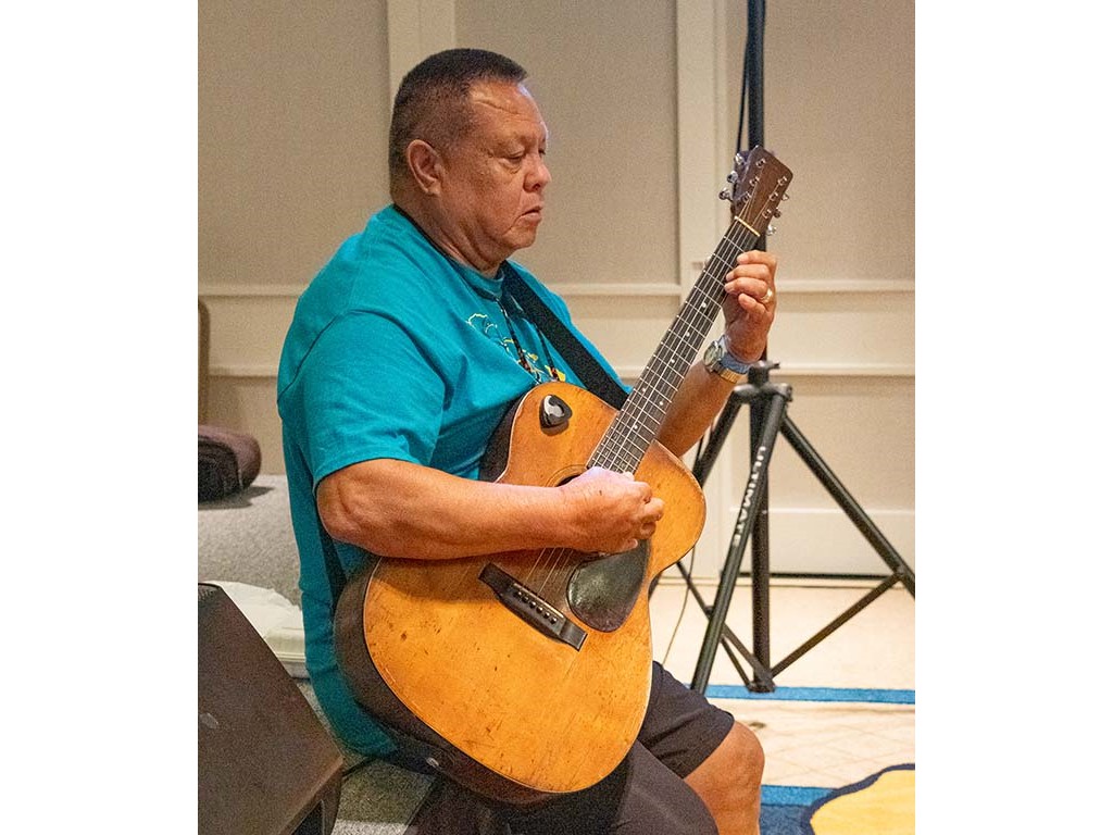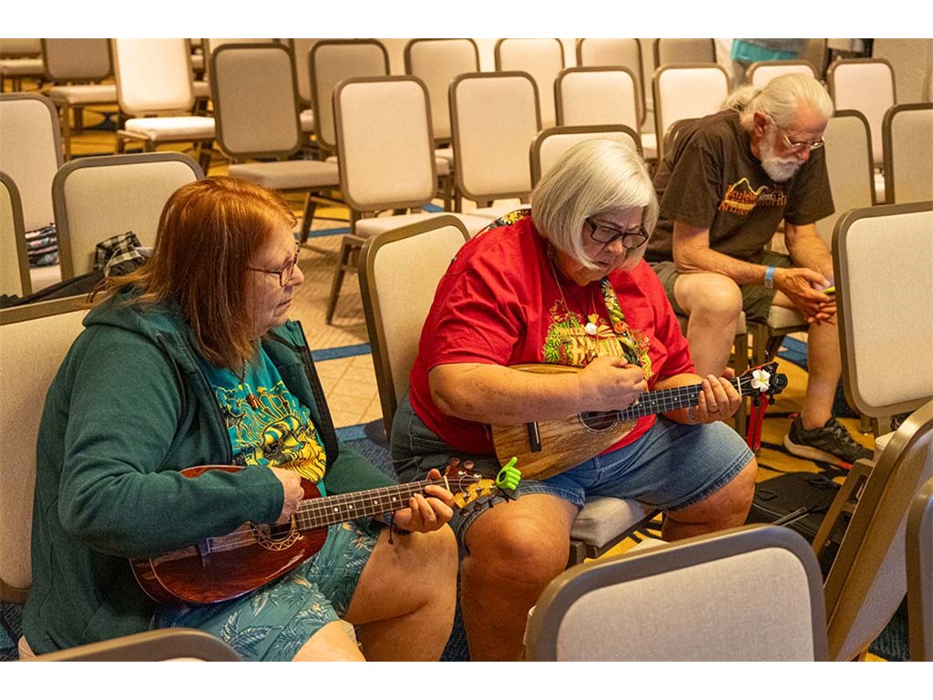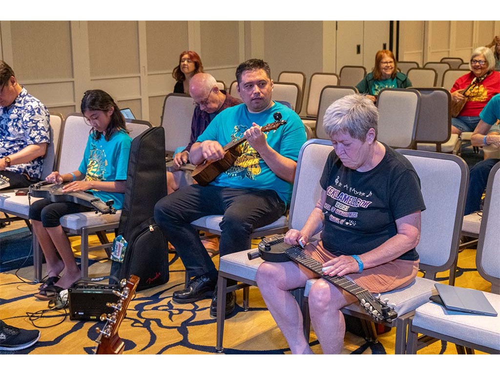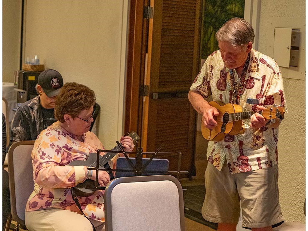 The Friday Evening Kanikapila was well attended by festival musicians, steel guitarists, other musicians and festival guests who just wanted to watch and enjoy the music. In addition to steel guitars, guests played guitar, ‘ukulele, and fiddle. A few guests brought multiple instruments to play.