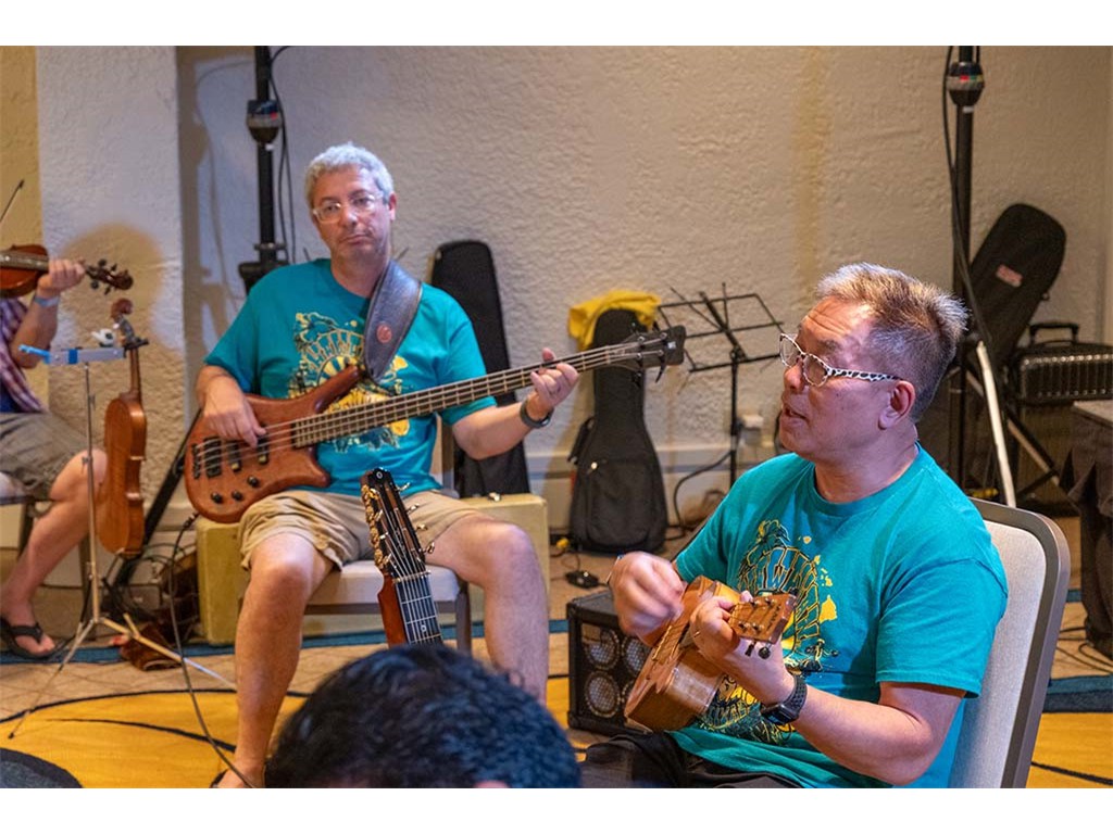 • Jim Dowiat, Kaipo Lindsey on ʻukulele, Vickie Van Fechtmann, Mark Gaponoff on fiddle, Hiʻipoi Lindsey, and Nate Goore on bass.