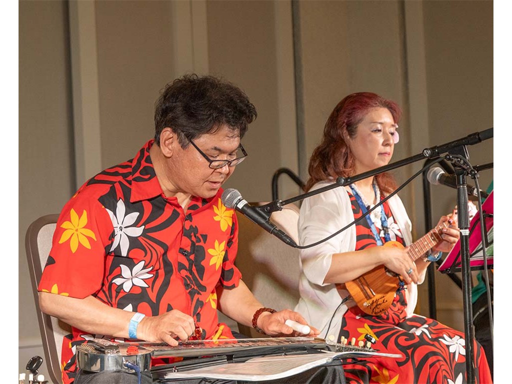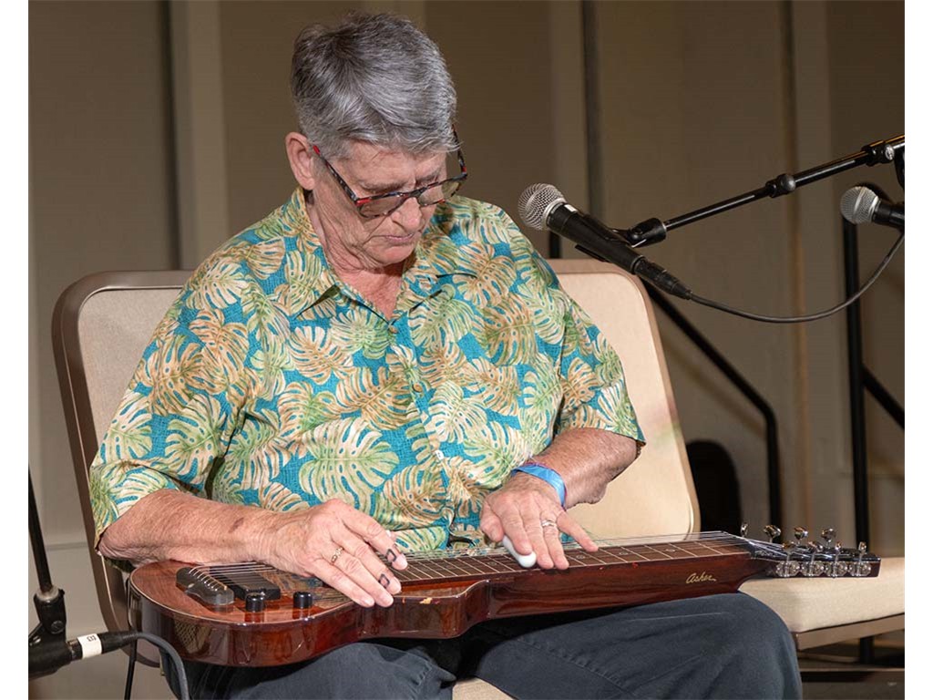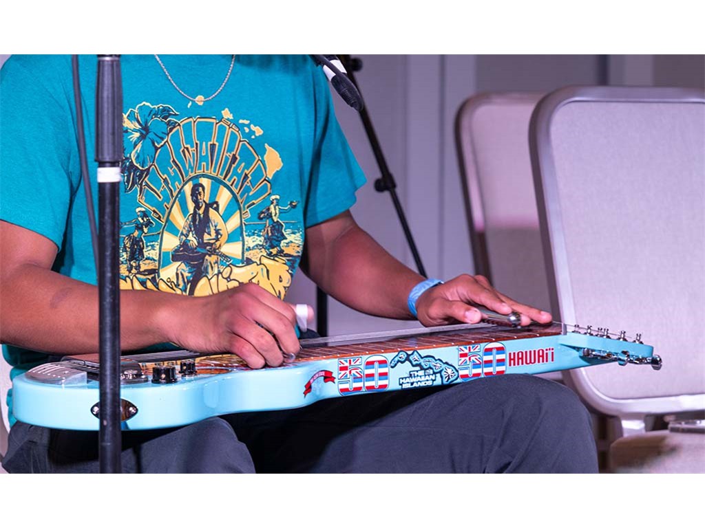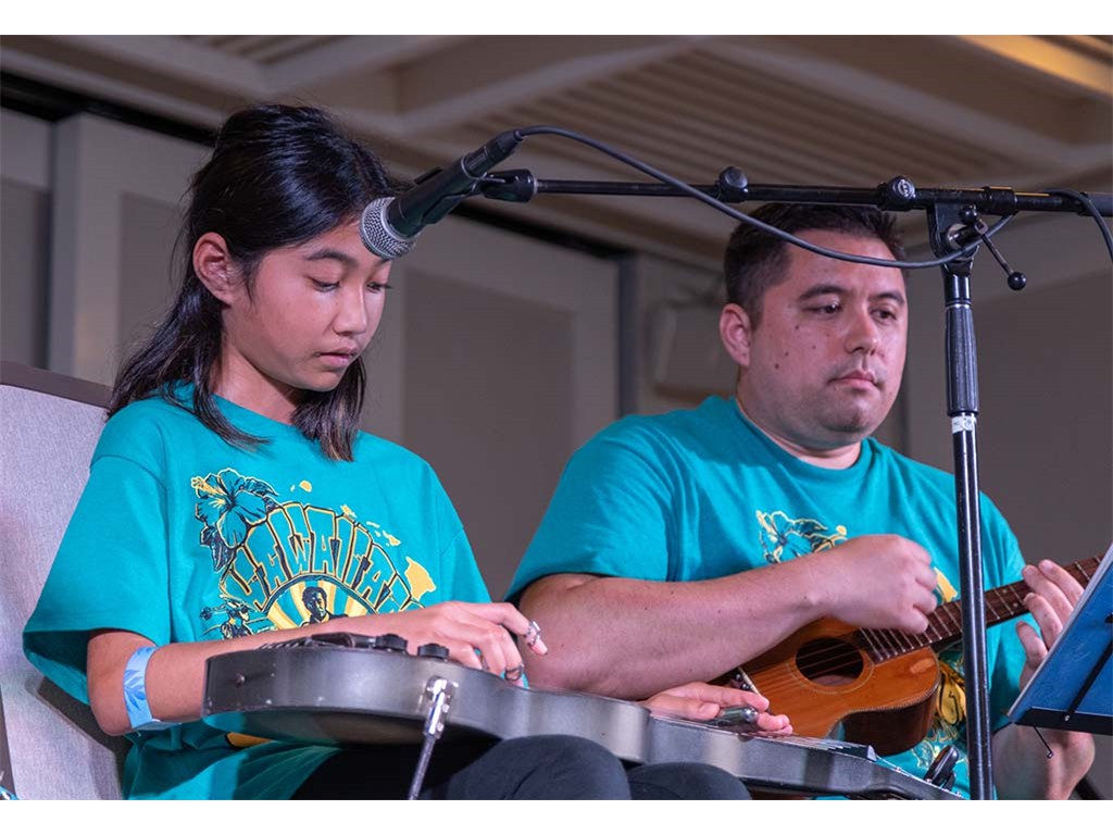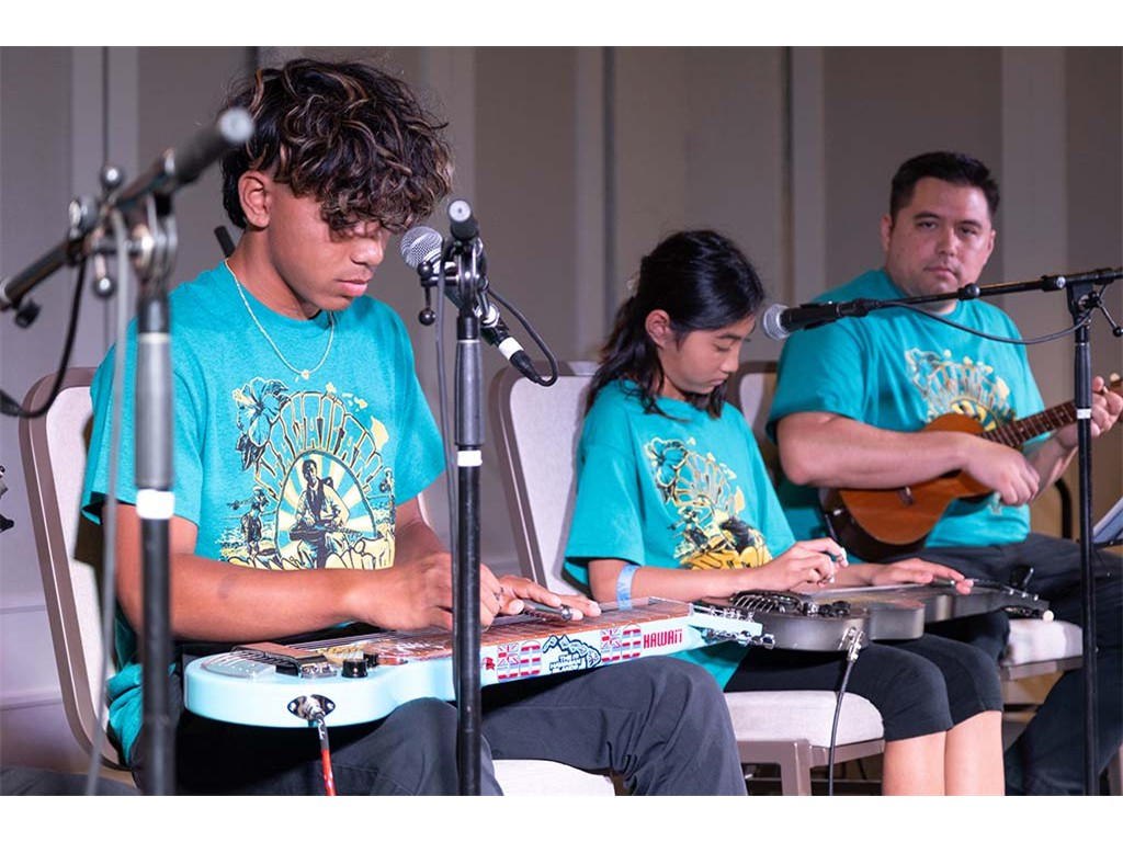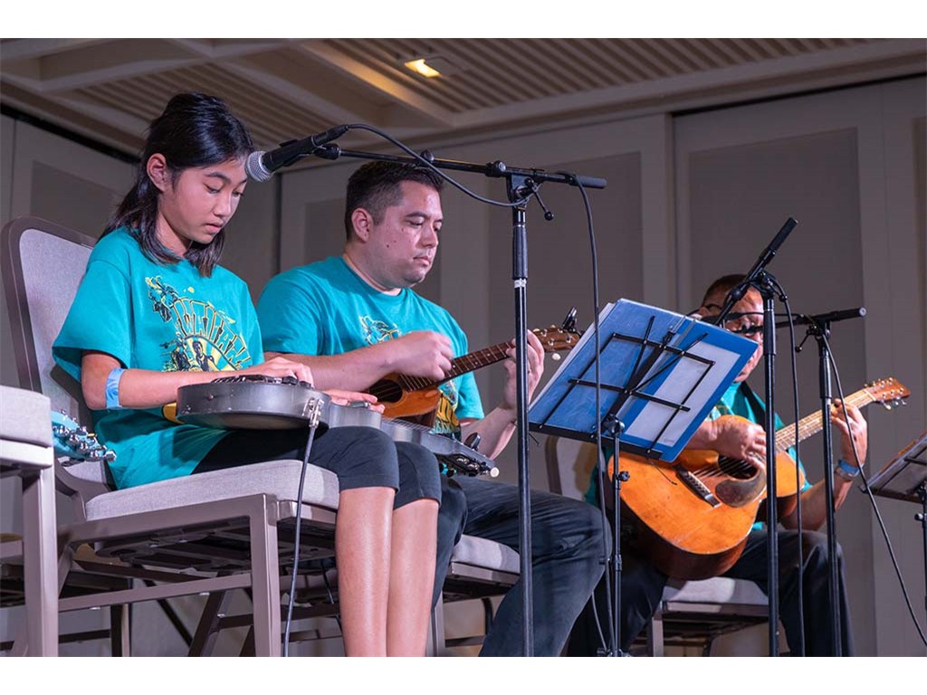 Open Stage performers came from various U.S. states, Hawai‘i, and Japan. All were eager to share their talents with festival guests. Open stage emcee was Nate Goore. NextGen steel guitarists Enosa and Hi‘ipoi also participated in the program.