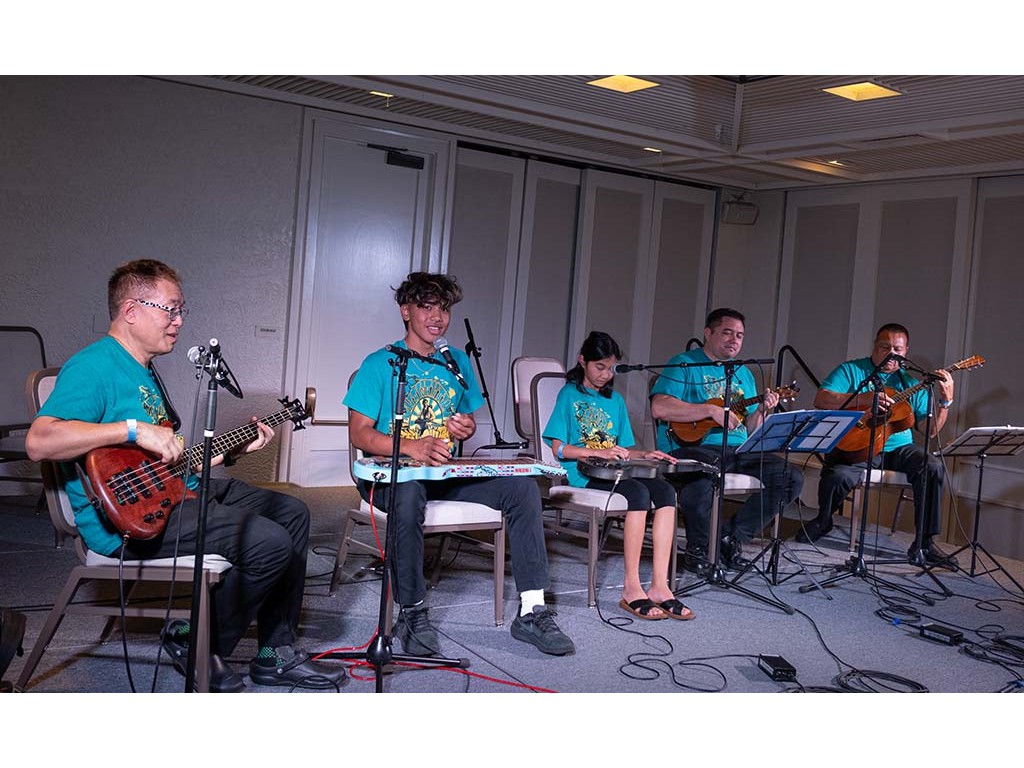 Shinichi Kakiuchi from Saitama, Japan, accompanied by Bobby Ingano, Kumiko Kakiuchi, and Kaipo Asing.