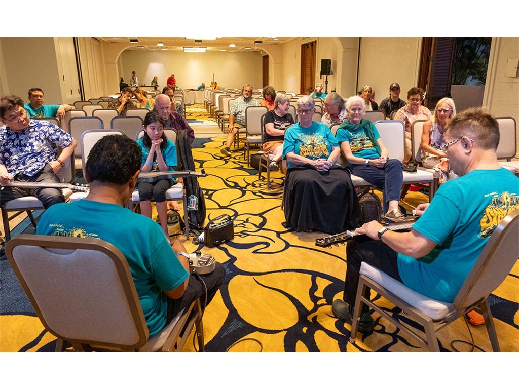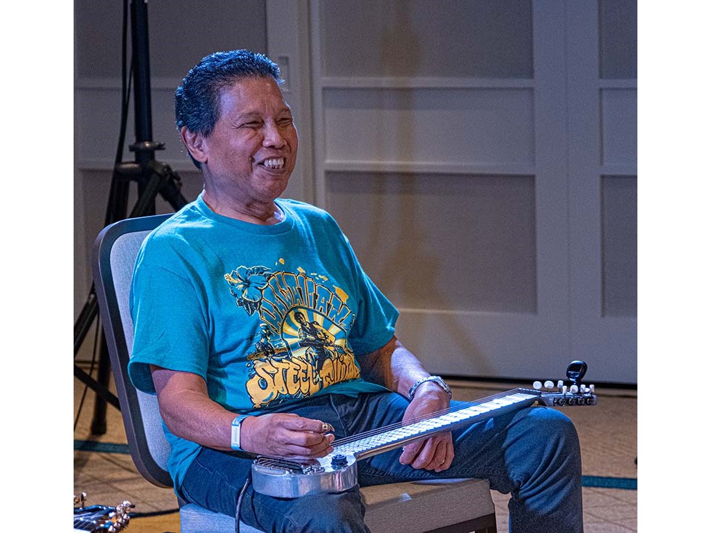 A Friday evening workshop conducted by Alan Akaka and Bobby Ingano included a discussion about playing tips and techniques, musical interludes, and steel guitar "talk story."