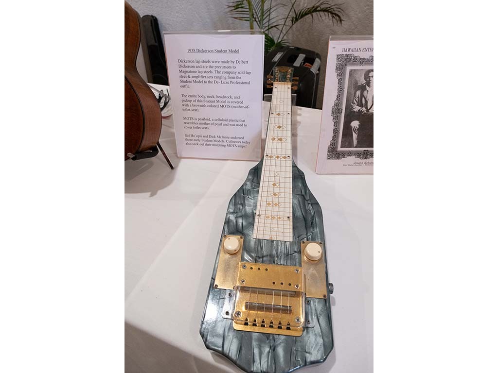 Steel guitars on display: A 1938 Dickerson Student Model.