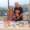Festival store with Linda Mentzer and Daniel Tremblay. Available for sale were t-shirts, steel guitar strings, bars, and Hawaiian music CDs including some from festival artists.