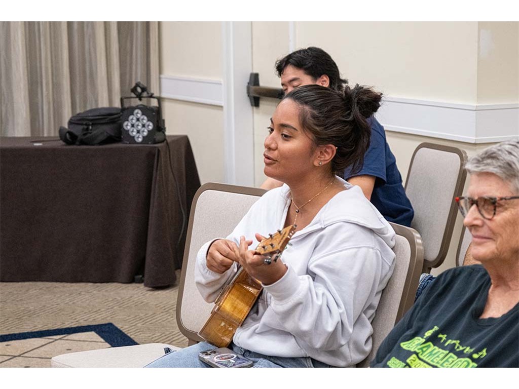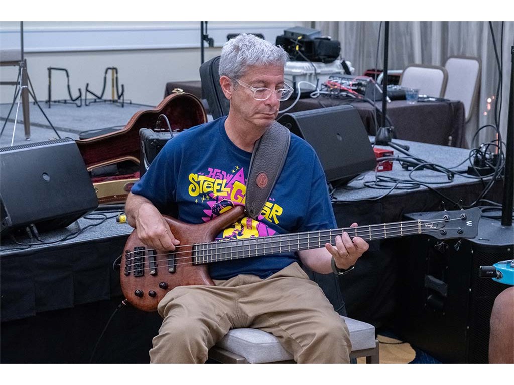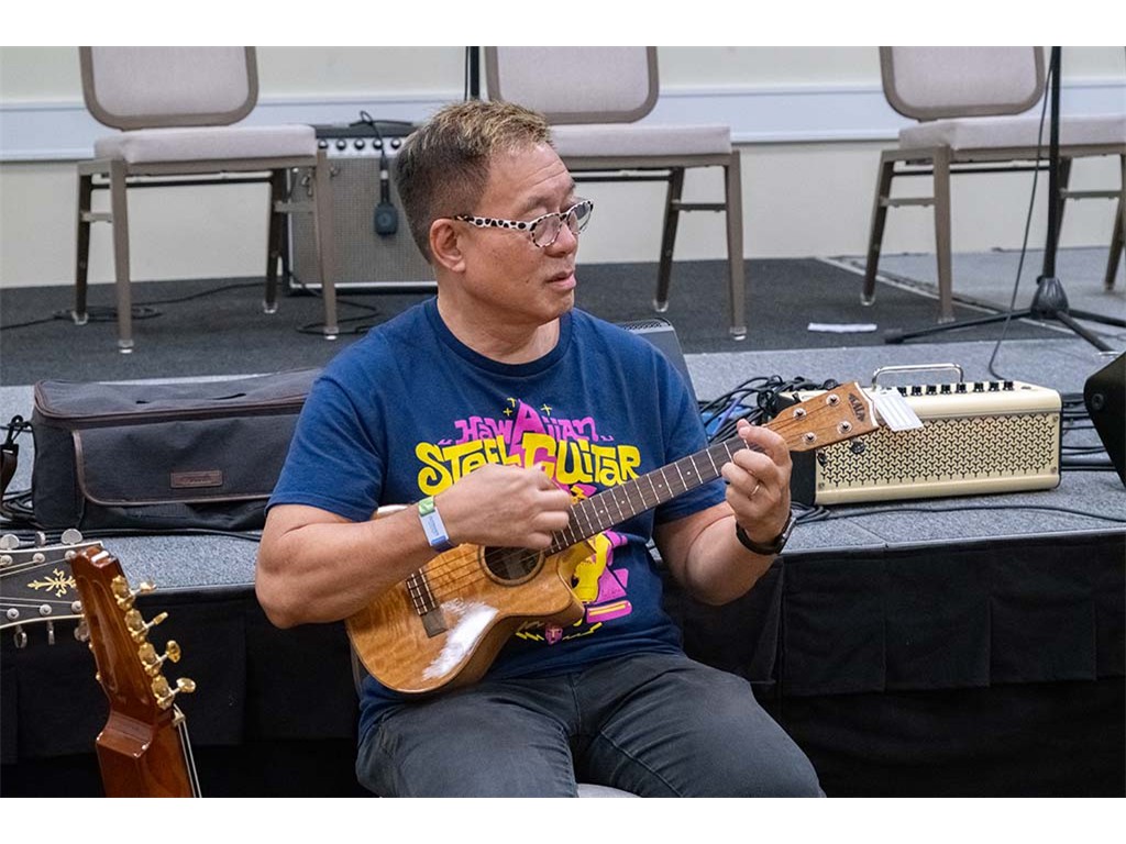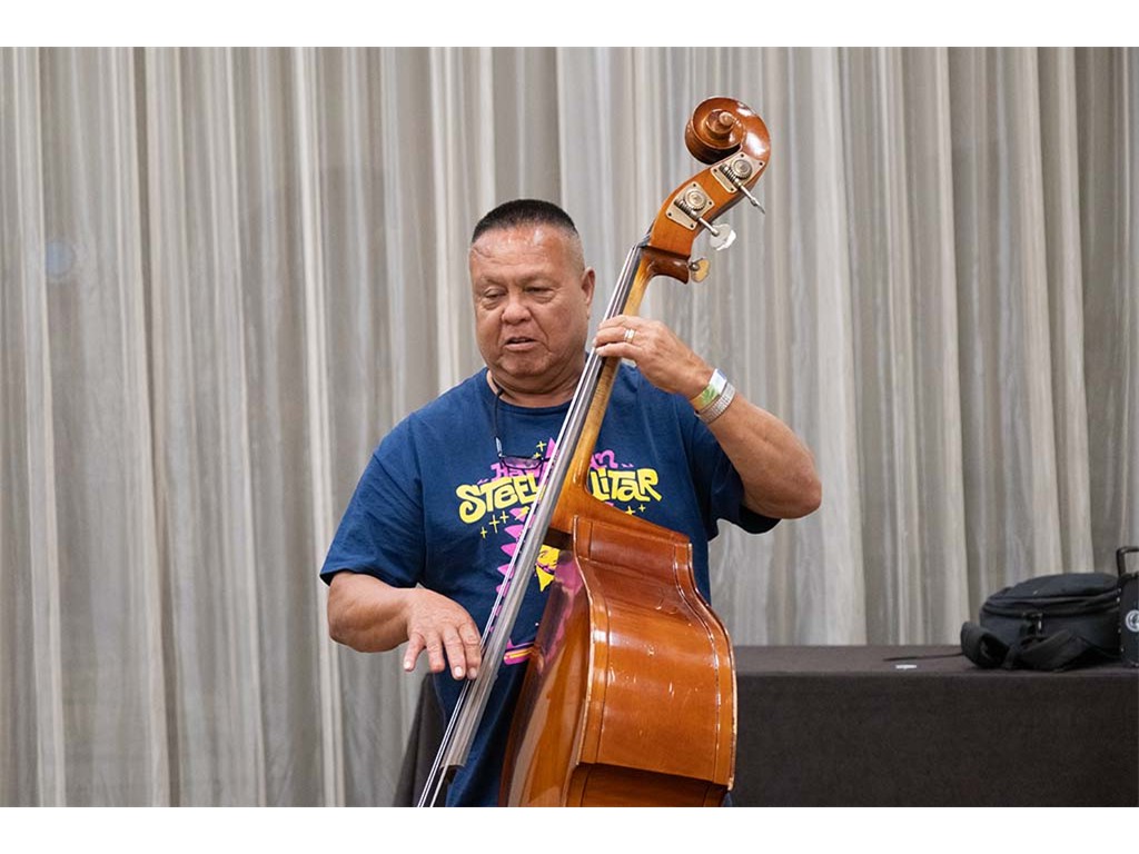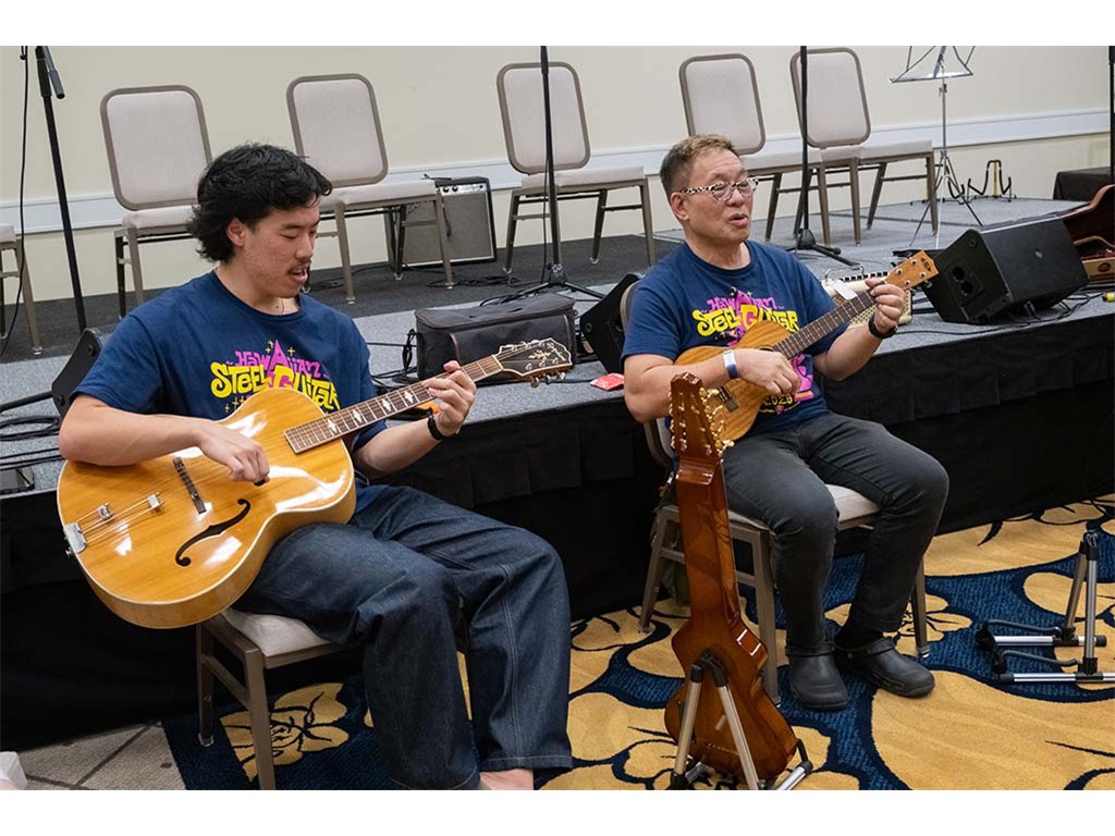 The Friday Evening Kanikapila evolved from the workshop held prior to the kanikapila and was well attended by festival musicians, steel guitarists, other musicians and festival guests who just wanted to watch and enjoy the music. In addition to steel guitars, guests played guitar, ‘ukulele, and bass, and many musicians switched off on instruments.