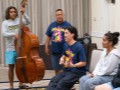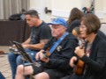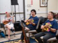 The kanikapila expands. Alan Akaka, Nate Goore, Enosa Lyman, Devin Nakahara, Dylan Kai, Mark Segelman, Linda Nagai, and Libby and Aaron Benolkin.