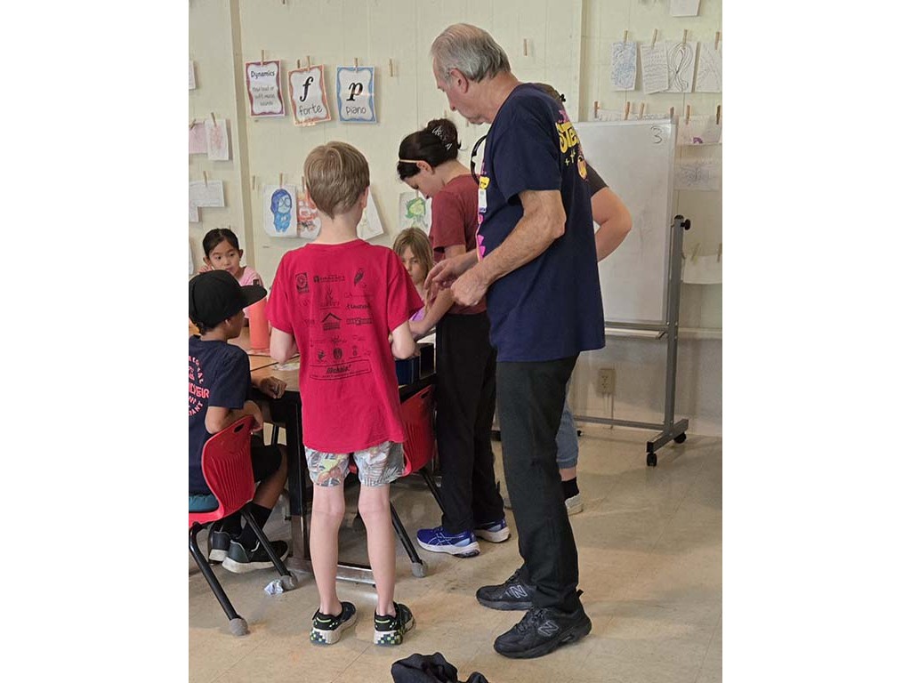 Makamae describes the steel guitar to the class.Back to Gallery: 2025 Festival