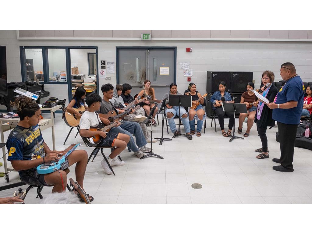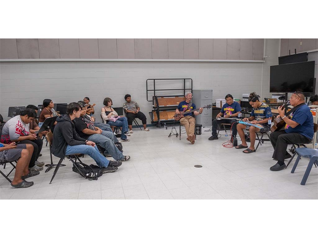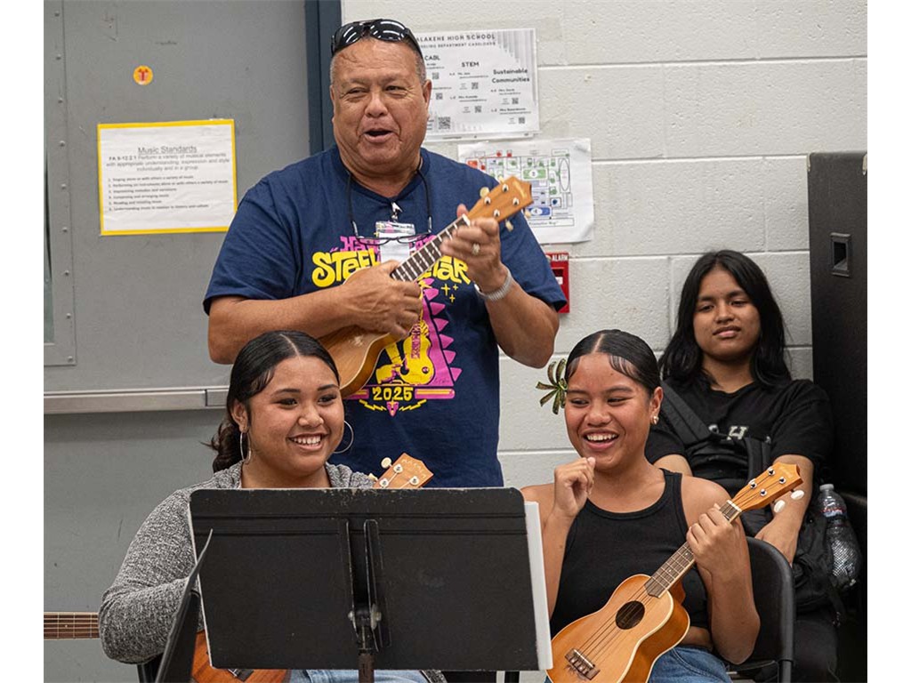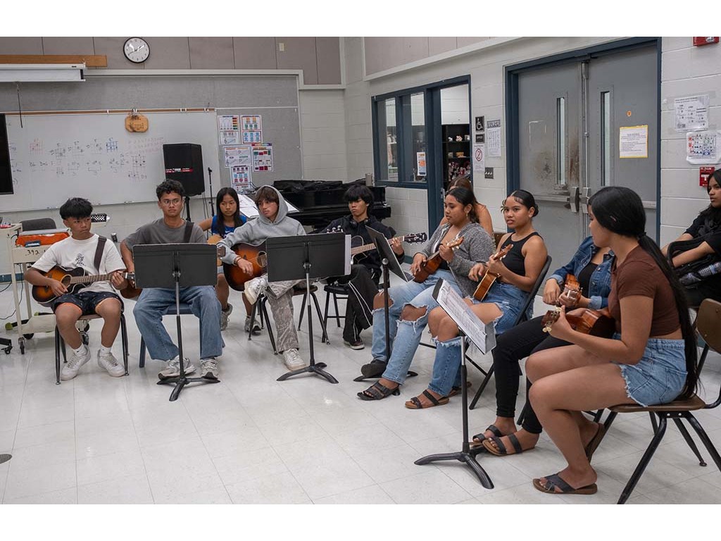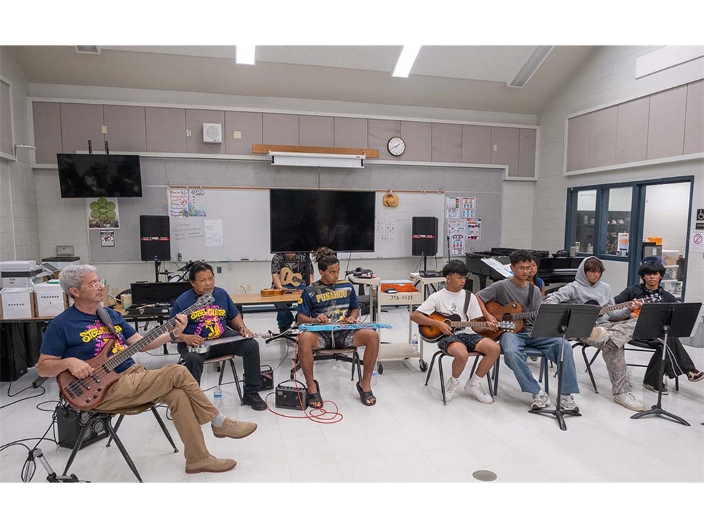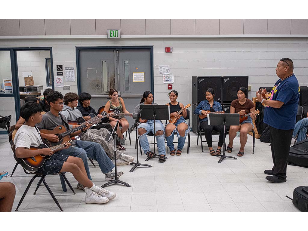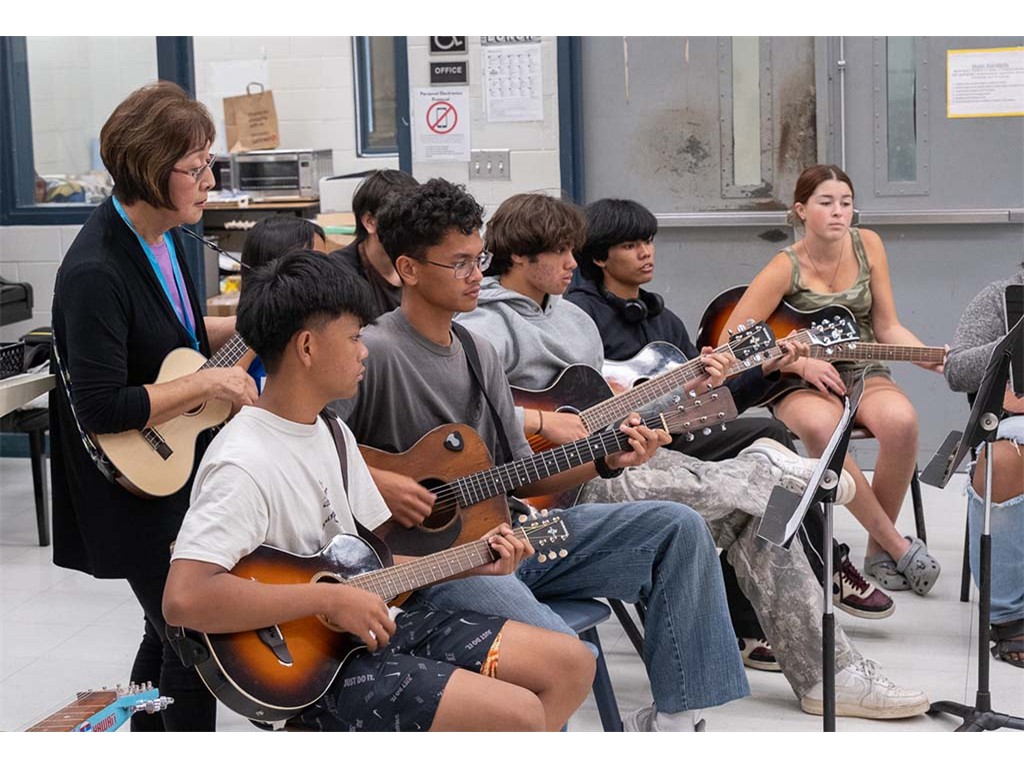 Kaipo leads the student guitars and ʻukuleles.