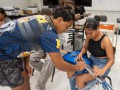 Enosa explains the steel to a student.