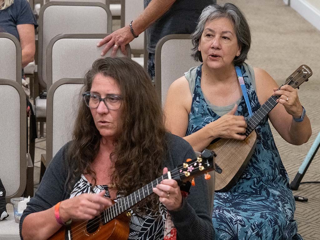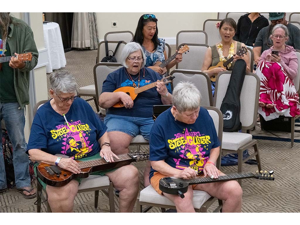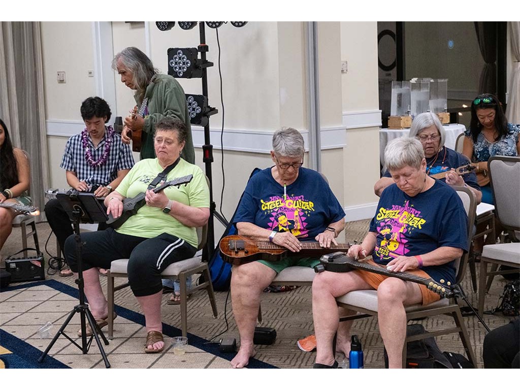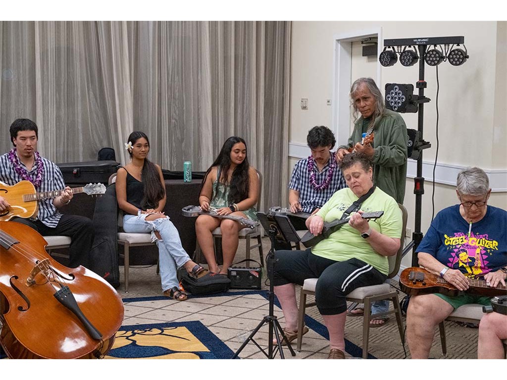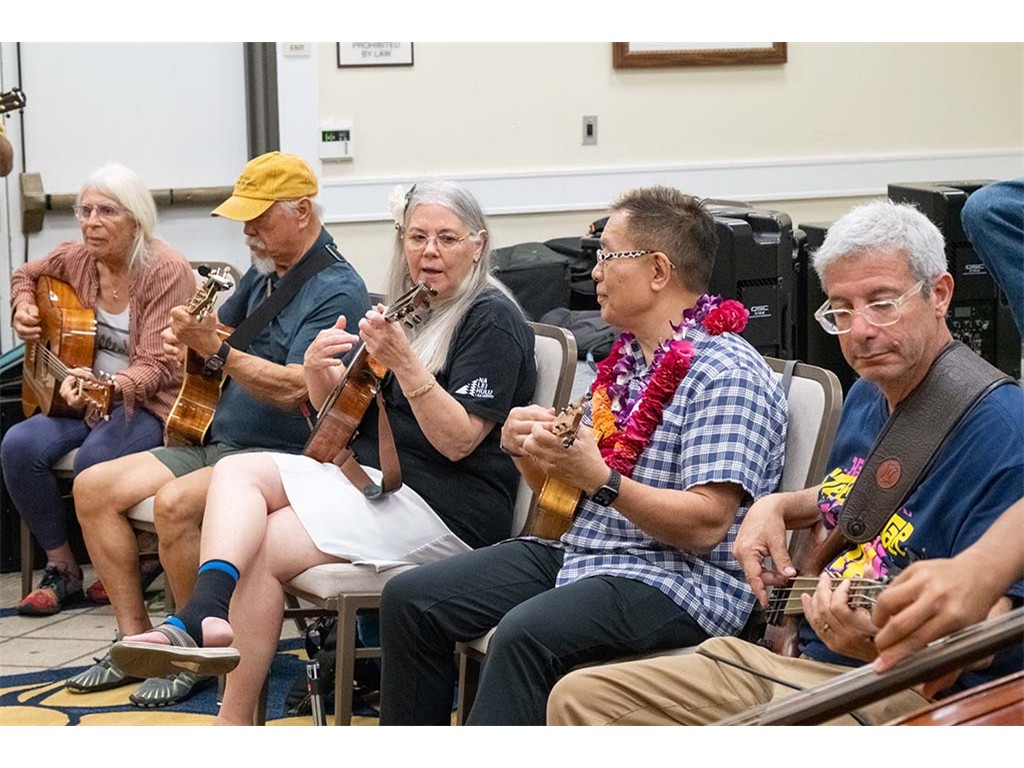 The Kanikapila Circle: Amy Sullivan, Barbara Bones, Vickie Van Fechtmann, Linda Nagai, Mark Segelman, Mālie Lyman, Mayari Ong, Mark Gaponoff, Lauren Broido, Al Tringali, Mary Skybrook, Alan Akaka, Nate Goore, and Enosa Lyman.