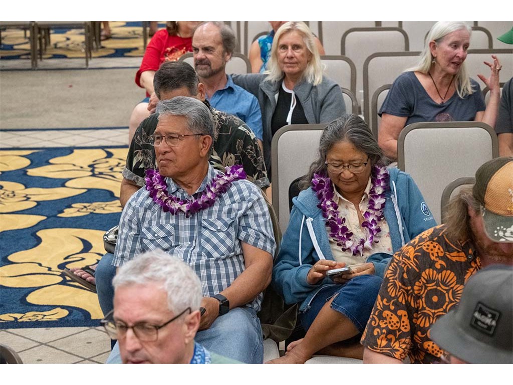 Linda Nagai, Mark Segelman, Mālie Lyman, Mayari Ong, and Mark Gaponoff. Second row: Danny and Anna Akaka, Aaron and Libby Benolkin.