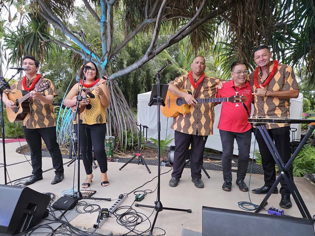 Resort luʻau entertainment featuring Kapono Lopes, Emma Coloma, Keola Grace, and Al Greene, Jr.