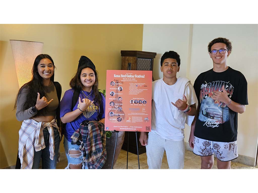 NextGen Steel Guitarists Isabella Bertelmann, Makamae Lyu-Napoleon, Enosa Lyman, and Pono Fernandez.