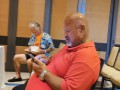 Check-in time for Greg Sardinha. Kimo Kahoano waits his turn. Shane and Enosa Lyman are also checking in.