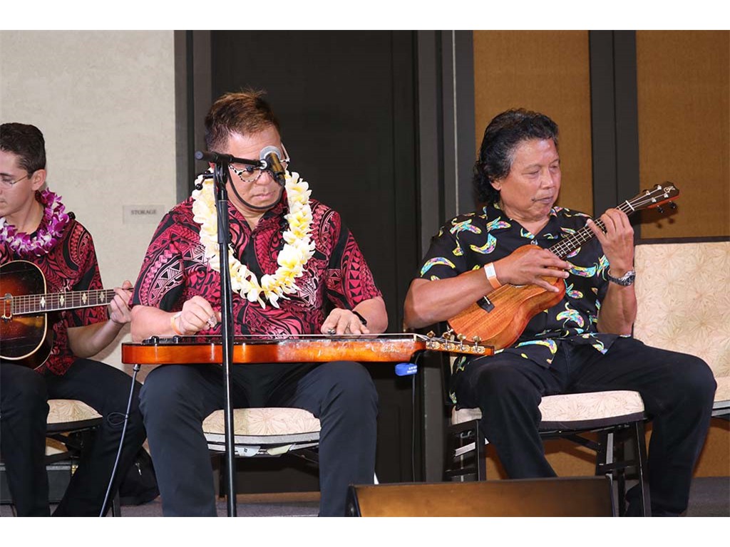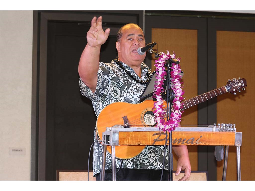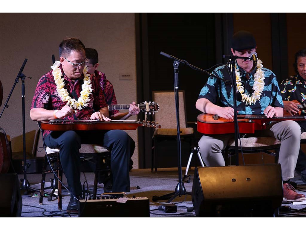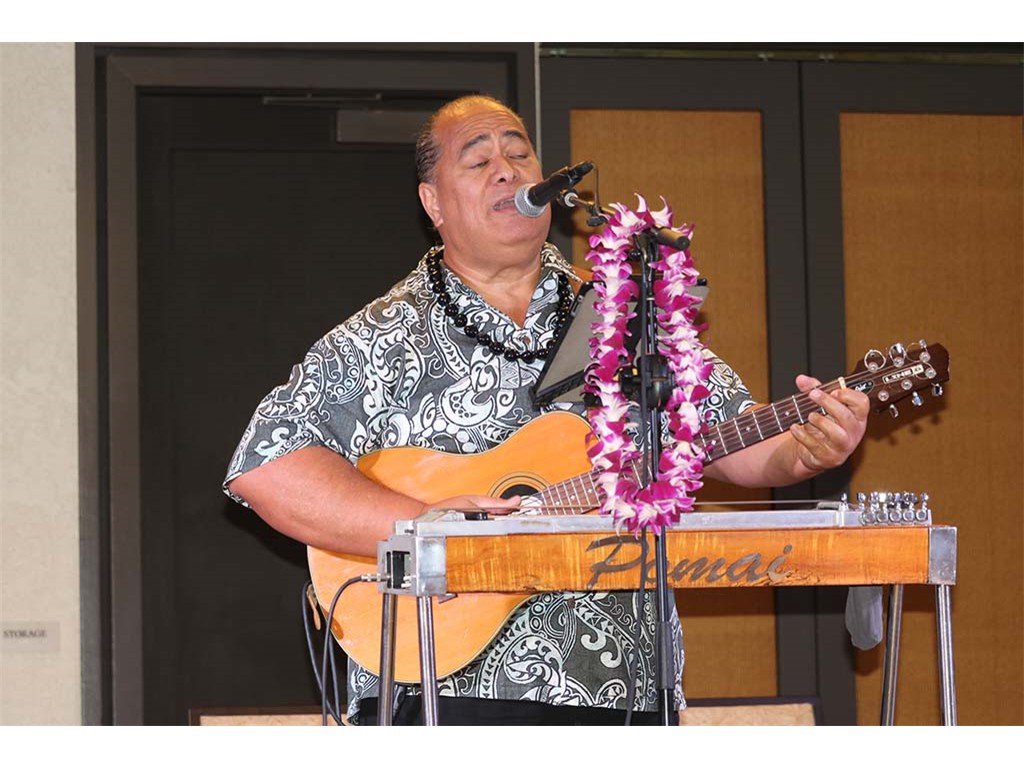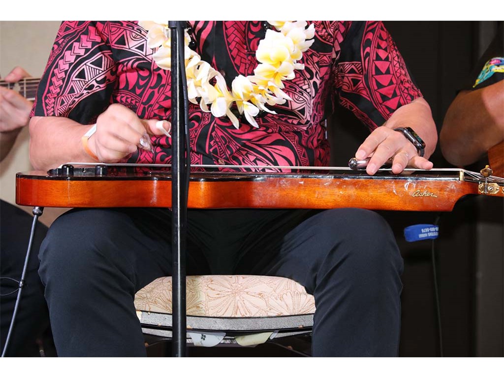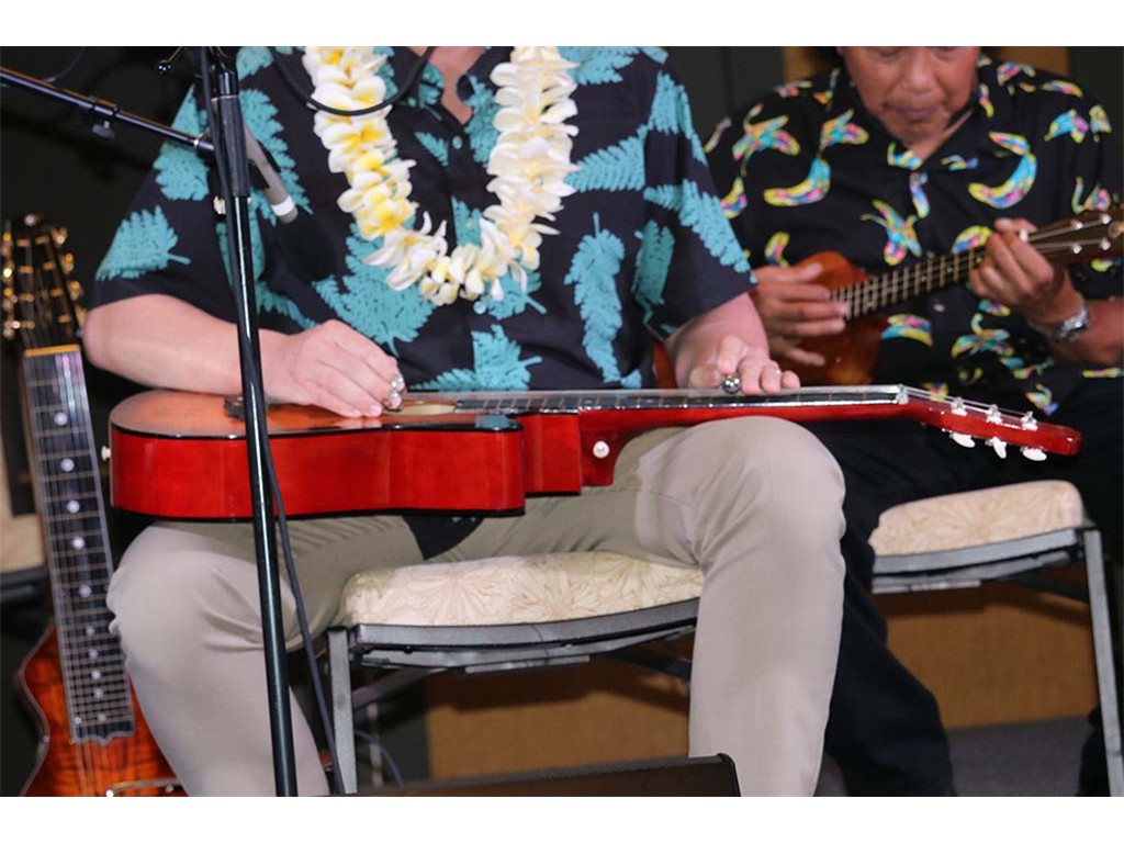 Featured steel guitarist Kapono Lopes. He was so impressed with a project guitar converted by Daniel Tremblay to become a steel guitar that he asked to use it for his performance. Kapono was assisted by Bobby Ingano.