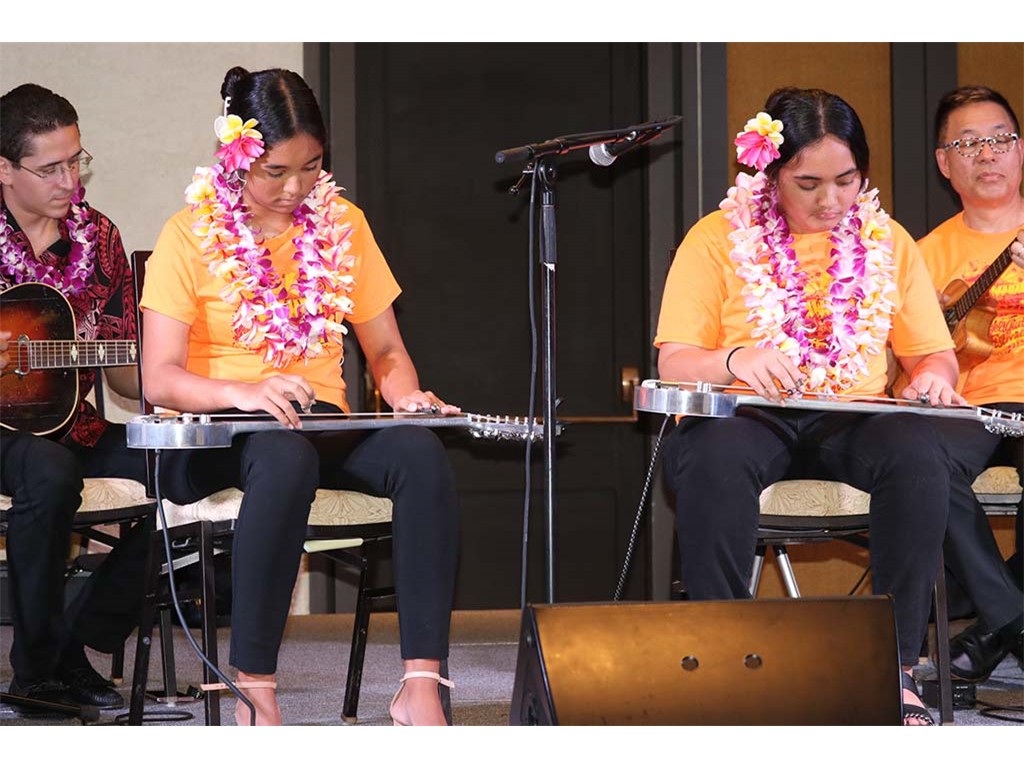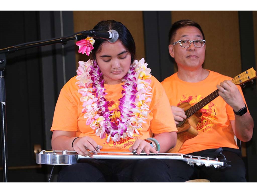 NextGen steel guitarist Makamae Lyu-Napoleon with Alan Akaka.