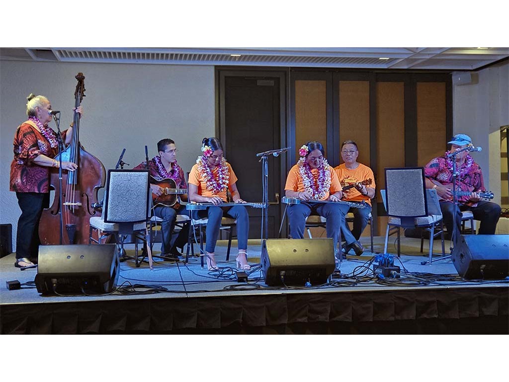 Daniel Tremblay conducted the hands-on experience and displayed an inexpensive guitar that he converted to function as a steel guitar. This guitar and the process he uses were presented at the Friday workshop, and Kapono Lopes was so impressed with the guitar that he asked to play it during his performance. The guitar, autographed by all participating musicians, was auctioned off with proceeds going to HIMELE to support its activities.