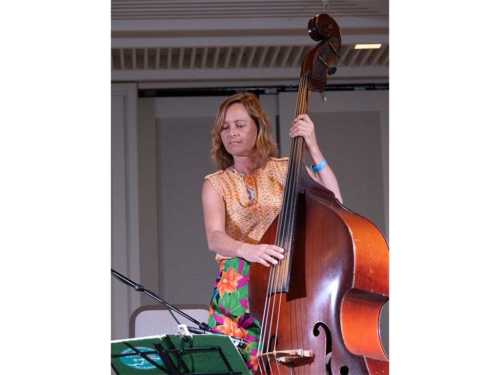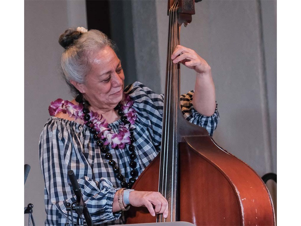 Helene Woodward on U-bass with Alan and Mālie.