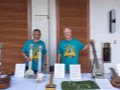 Geri Valdriz and Chris Stewart setting up the steel guitar exhibit table. Photo by Addison Ching.