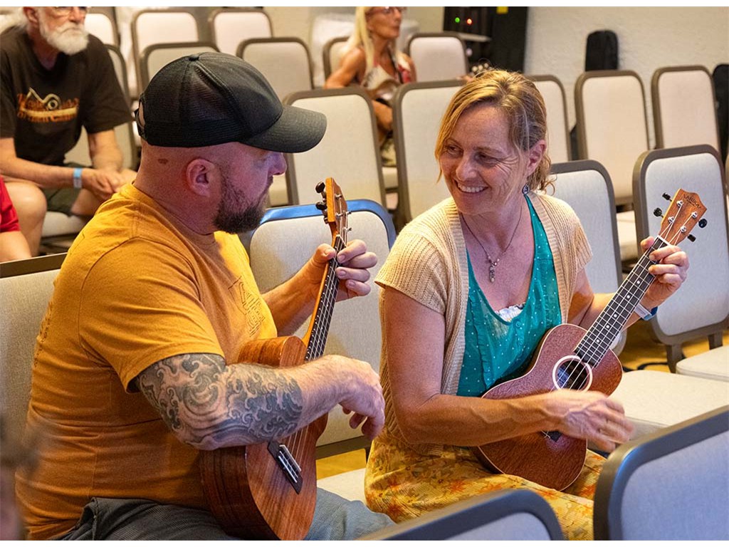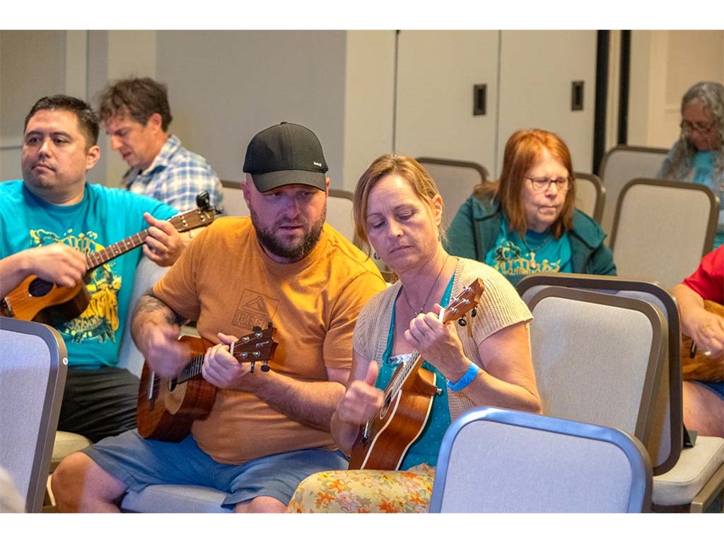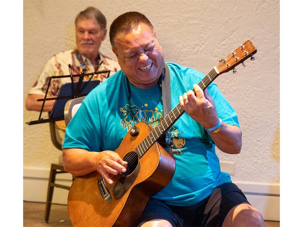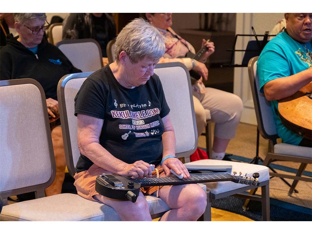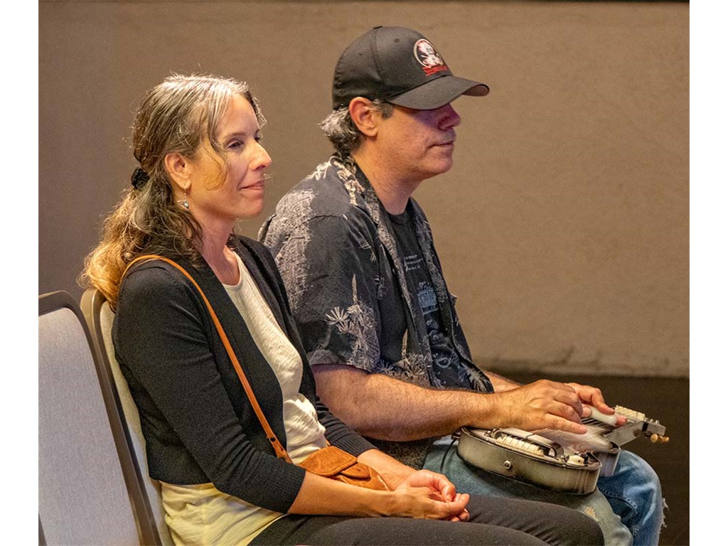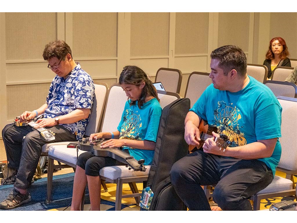 The Friday Evening Kanikapila was well attended by festival musicians, steel guitarists, other musicians and festival guests who just wanted to watch and enjoy the music. In addition to steel guitars, guests played guitar, ‘ukulele, and fiddle. A few guests brought multiple instruments to play.
