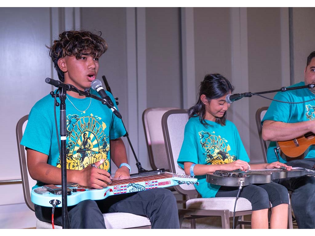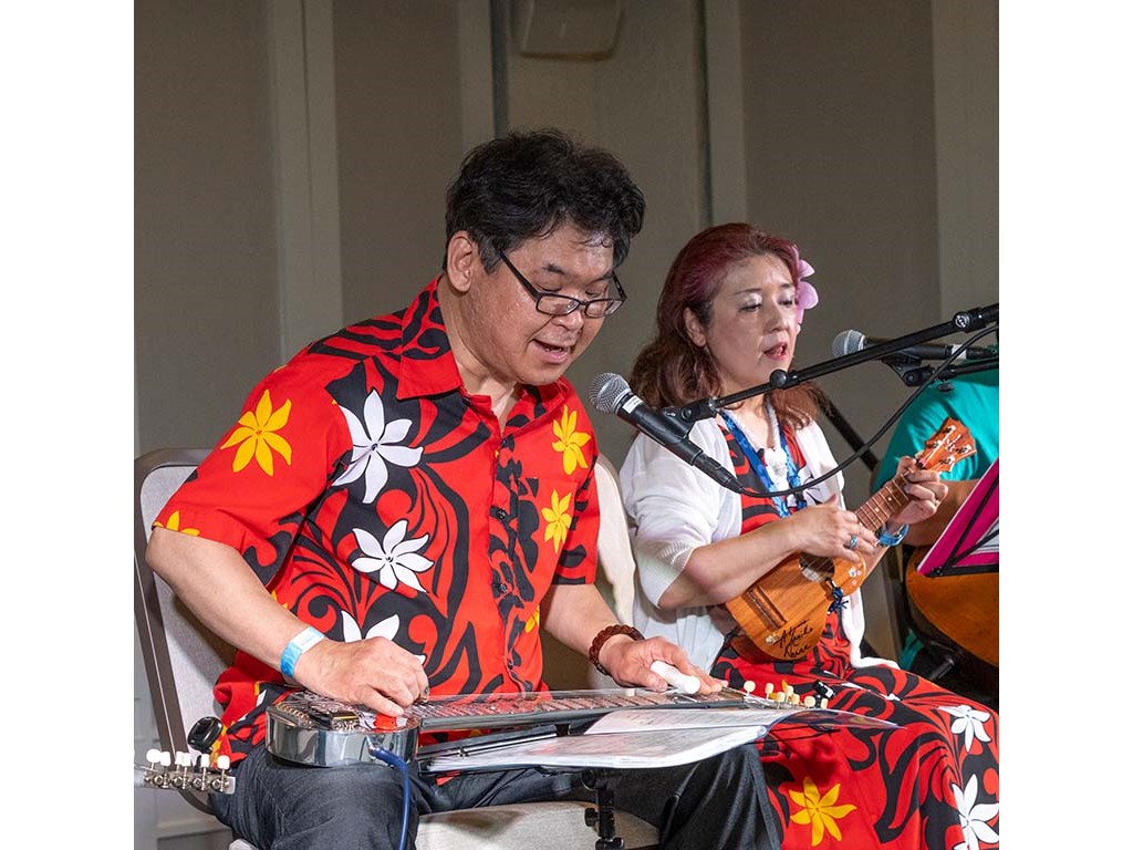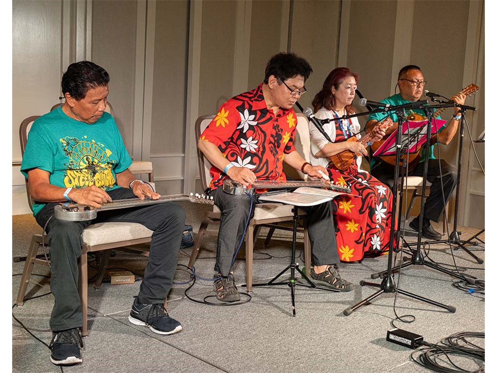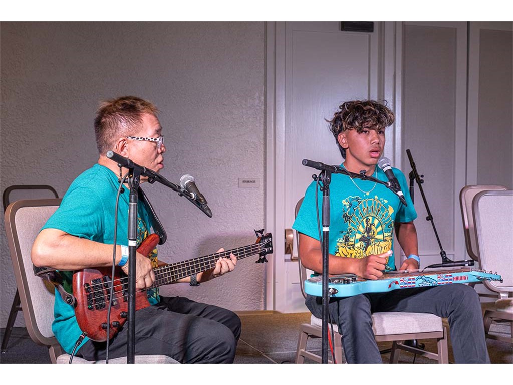 Open Stage performers came from various U.S. states, Hawai‘i, and Japan. All were eager to share their talents with festival guests. Open stage emcee was Nate Goore. NextGen steel guitarists Enosa and Hi‘ipoi also participated in the program.