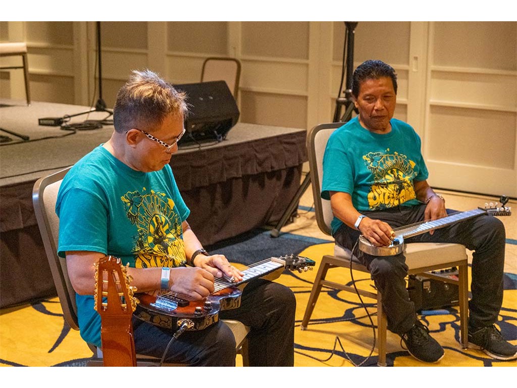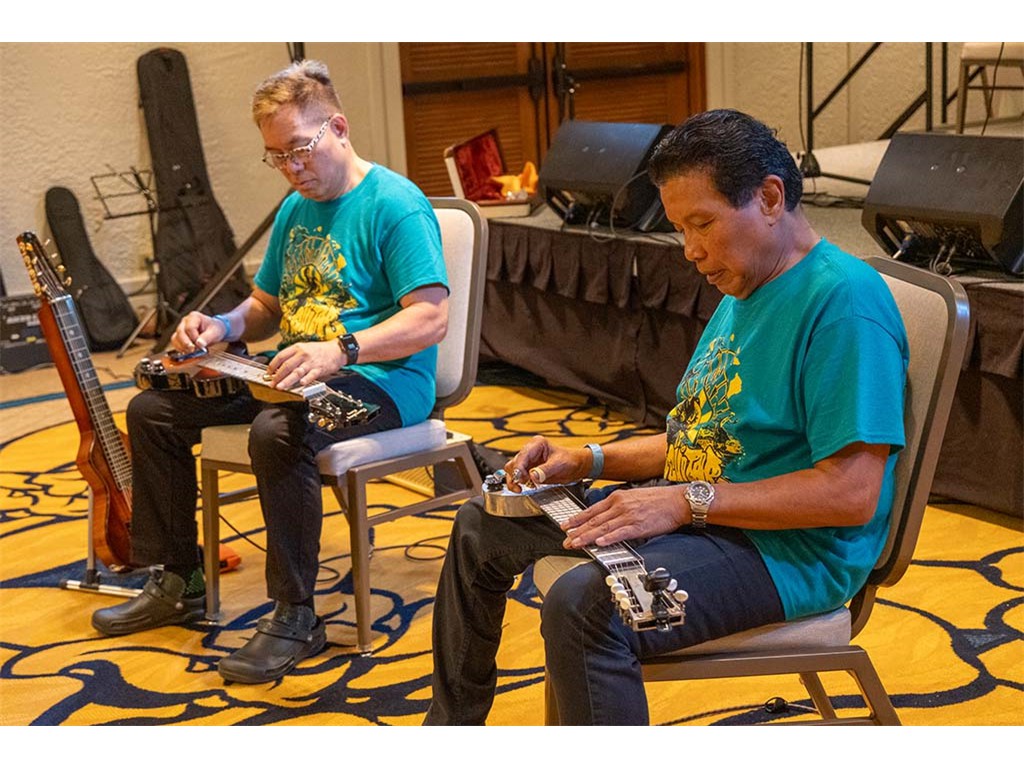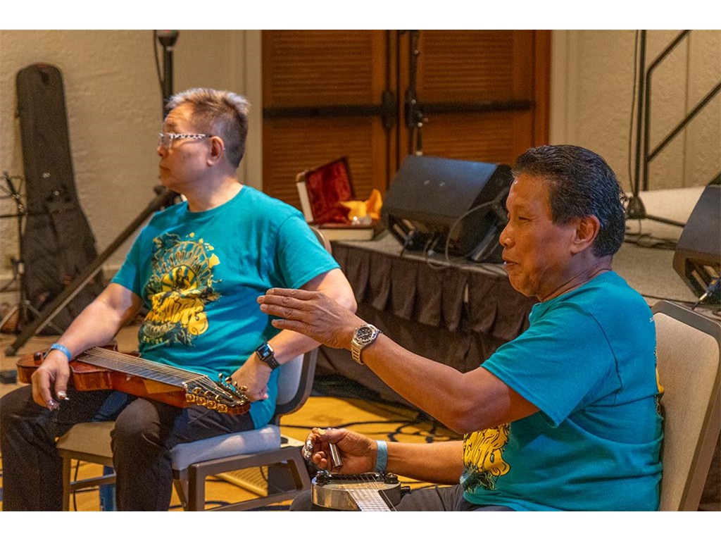 A Friday evening workshop conducted by Alan Akaka and Bobby Ingano included a discussion about playing tips and techniques, musical interludes, and steel guitar "talk story."