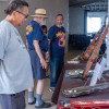 Geri Valdriz and festival guests at the steel guitar exhibit.