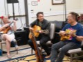 The kanikapila expands. Alan Akaka, Nate Goore, Enosa Lyman, Devin Nakahara, Dylan Kai, Mark Segelman, Linda Nagai, and Libby and Aaron Benolkin.