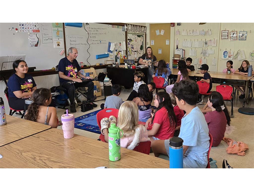 A presentation team comprising NextGen Makamae Lyu-Napoleon and Dan Tremblay visited Hōluoaloa Elementary School. Students in Taylor Deskin's 3rd grade class were treated to a steel guitar presentation.
