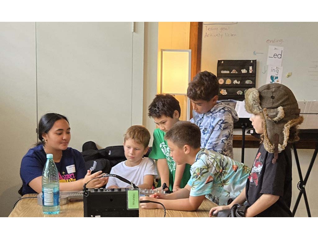 Makamae describes the steel guitar to the class.Back to Gallery: 2025 Festival