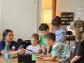 Dan and other students watch as a student tries out the steel guitar.