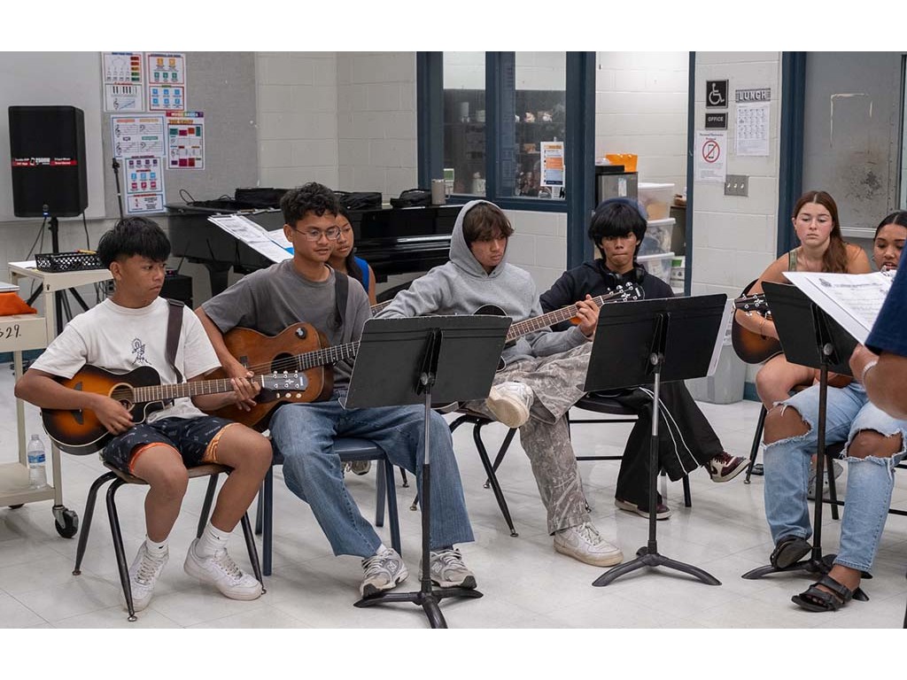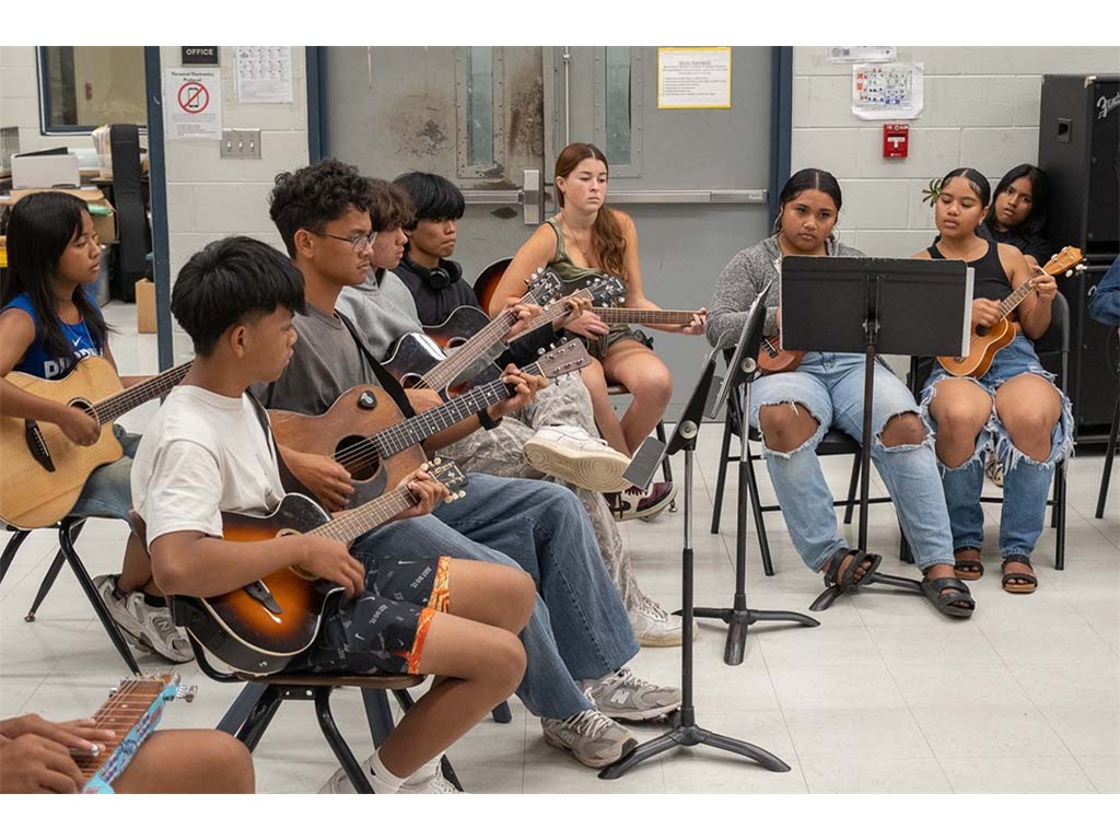 Kaipo leads the student guitars and ʻukuleles.