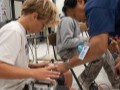 Enosa explains the steel to a student.