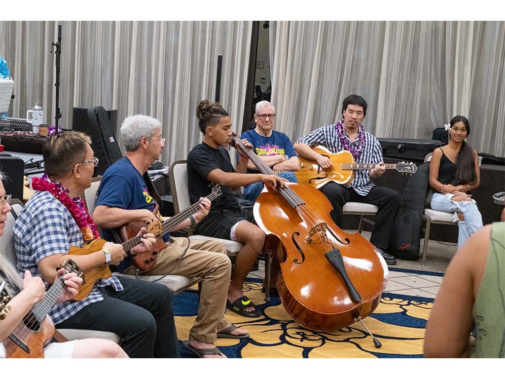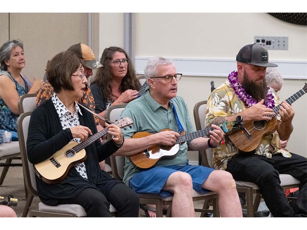 The Kanikapila Circle: Amy Sullivan, Barbara Bones, Vickie Van Fechtmann, Linda Nagai, Mark Segelman, Mālie Lyman, Mayari Ong, Mark Gaponoff, Lauren Broido, Al Tringali, Mary Skybrook, Alan Akaka, Nate Goore, and Enosa Lyman.